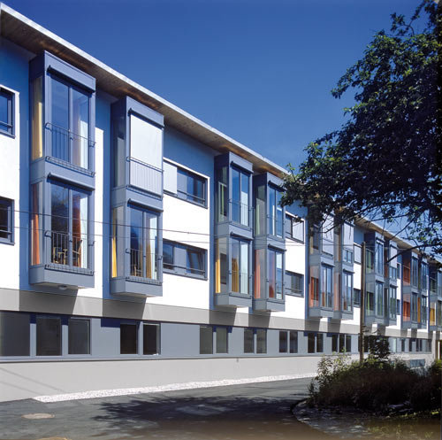 Durch die Kompaktheit der Baukörper und die große Dämmstärke der Außenwände konnte das Gebäude als Niedrigenergiehaus ausgeführt werden, wobei die Warmwasseraufbereitung und Heizungsunterstützung mit auf dem Dach situierten Sonnenkollektoren bewerkstelligt werden. Die Bewohnerzimmer werden mit kontrollierter Raumlüftung mit Wärmerückgewinnung ausgestattet, frische, vortemperierte Luft und sparsamer Umgang mit Heizenergie ist dadurch gewährleistet.