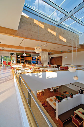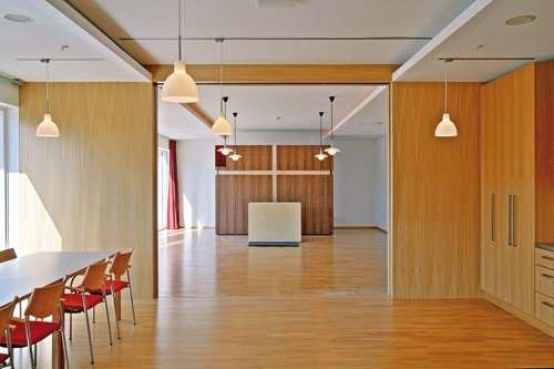 Die Heimbewohner sollen in das soziale und öffentliche Leben im Dorf mit einbezogen werden. Dies kann durch das neue Sozialzentrum mit vielfältigen, öffentlichen und sozialen Einrichtungen sichergestellt werden. (Text: Architekten)