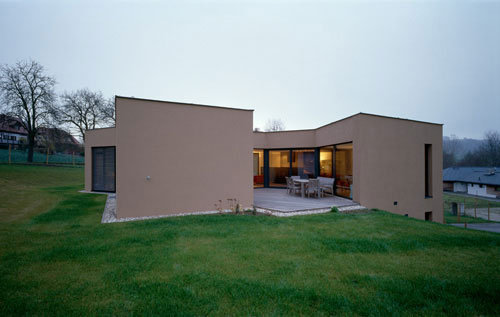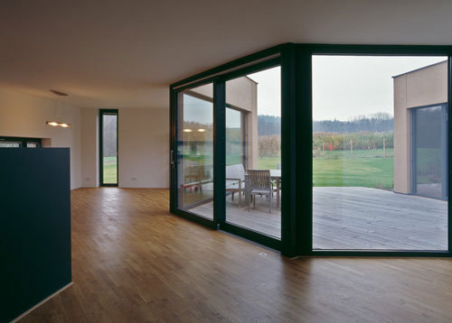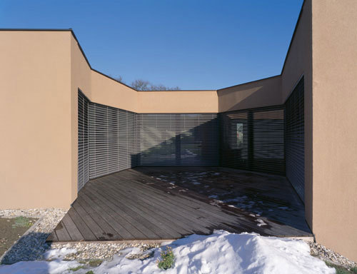 „Ein Atriumhaus mitten in der Natur mag für einen Außenstehenden eigenartig wirken, denn üblicherweise kennt man diese Typologie aus der Stadt, wo die Leute einander ins Fenster blicken“, sagt Architekt Hertl. „In diesem Fall waren die Bauherren allerdings so überzeugt von ihrem Wunsch, dass ich an diesem Auftrag sofort Gefallen gefunden habe.“