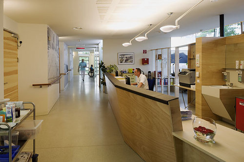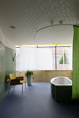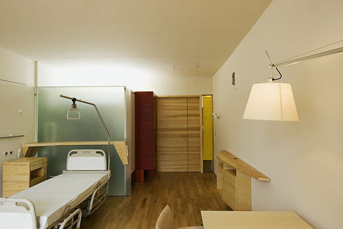 Die Bauaufgabe, ein Hospiz einzurichten, verlangt, sich diesen Themen besonders achtsam zu widmen. Wolfgang Feyferlik und Susi Fritzer haben ein Gebäude im Geriatrischen Zentrum der Stadt Graz zu einem Hospiz umgebaut. Sie haben daraus einen Ort gemacht, der Erinnern, Träumen und Geborgensein ermöglicht. Vom robusten Charakter der Bausubstanz von 1929 am Rand eines parkähnlichen Areals ist einiges erhalten geblieben. Seine Schwere konnten die Architekten dem Baukörper jedoch mit wenigen, klug gesetzten Eingriffen nehmen. Sonne und Lichteinfall, um wohnliche Atmosphäre zu erzeugen, Gefühle der Ausweglosigkeit zu mildern und klaustrophobische Ängste zu vermeiden, sind zentrale Themen dieser Arbeit. So wurden die Gebäudeecken an der Westfront mit Verglasungen, die außenbündig liegen, geöffnet. Die Aufenthaltsbereiche, die dadurch entstehen, erinnern – mit freiem Ausblick auf Himmel und Geäst – an Veranden.