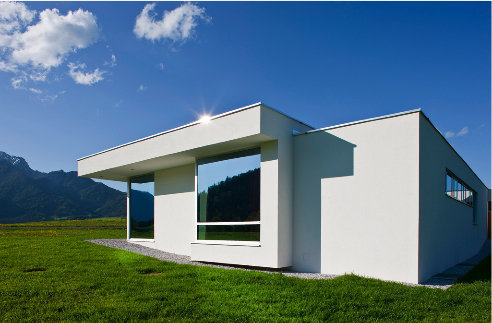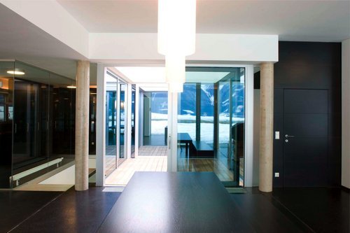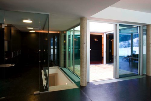 Alle Räume gruppieren sich um ein mittig liegendes, intimes Atrium, welches zur Belichtung und Belüftung dienen soll. Haupt.- und Nebenräume sind unterschiedlich hoch ausgebildet. Die raumhohen Fenster und Türelemente sind durch das weit auskragende Flachdach geschützt. Die gesamte Ausstattung (Nasszellen, Küche u.a.) orientiert sich an der Önorm B 1600 und an den speziellen Bedürfnissen von Menschen mit eingeschränkter Mobilität.