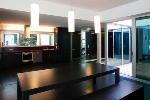 Das flachgedeckte Objekt ist ebenerdig konzipiert und orientiert sich mit dessen Raum- und Funktionsbeziehungen an den individuellen Anforderungen eingeschränkter Mobilität. Diese spezielle Nutzungsform begründet die Öffnung des Hauses: die Natur ist Teil des Wohnerlebnisses.