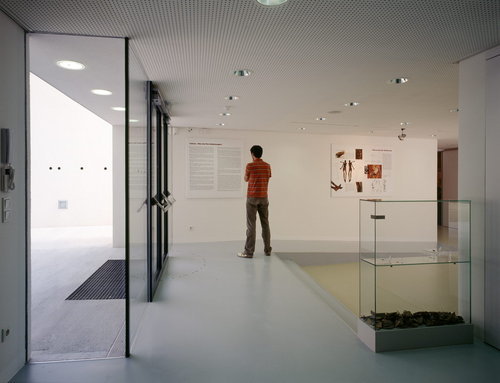 Die Achse wird vom Entwurf aufgegriffen und bis zum historischen Reckturm verlängert. Entlang und unter dieser Achse sind die neuen Funktionsbereiche des Erweiterungsgebäudes angeordnet: Ein Mehrzwecksaal, das Foyer und Nebenräume sowie ein Stiegenhaus zur vertikalen Anbindung an den Bestand.