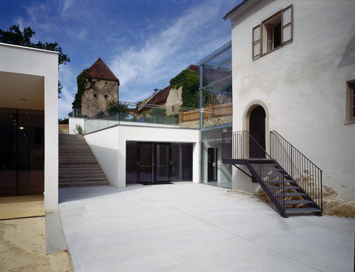 Von Außen betrachtet fügt sich der Zubau in die historisch gewachsene Bebauungsstruktur ein und lässt seine wahren Dimensionen erst im neu geschaffenen Innenhof erkennen: Ein gleichberechtigter Gegenpart zum historischen Teil des Museums.