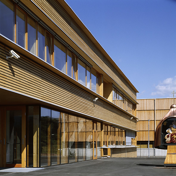 Der zweigeschoßige Gebäudekomplex liegt etwas außerhalb von Zeltweg, nördlich der Murtalbundesstraße und von dieser leicht abgerückt, wodurch ein repräsentativer Vorbereich und Besucherparkplätze geschaffen werden konnten. Die beiden Baukörper sind im rechten Winkel zueinander positioniert und über einen gemeinsamen Vorbereich verbunden.