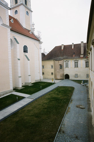 Der obere Abschluss der mittelalterlichen Klosteranlage wird wieder in Form einer Altane ausgebildet, deren Höhenlage sich an dem barocken Niveau der angrenzenden Hofbereiche orientiert. Sie wird so zur klar definierten Kontur des Grabungsbereiches, aber auch zu einer großzügigen Verkehrsfläche, die das Prinzip der Altane mit den Mitteln der Gegenwart erneut einlöst.
