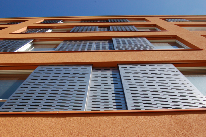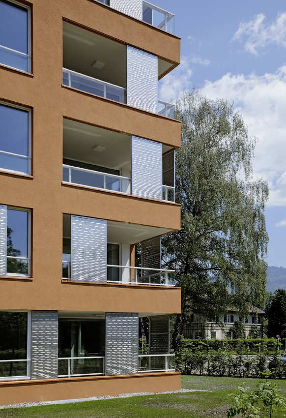 Große Kubaturen werden in Vorarlberg gerne mit Fabriksbauten assoziiert. Dies wird in Gestaltungselementen aufgenommen. Anstelle von kleinteiligen Fenstern werden Öffnungen in einem Rahmen als wiederholendes Element zusammen gefasst, was wiederum an Lofts erinnert.