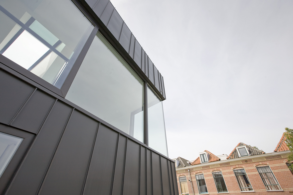 Das markante Wohnhaus V21K01 des Rotterdammer Architekturbüros pasel.künzel architects grenzt direkt an die historisch gewachsene Altstadt und ist eine typologische Neuinterpretation des holländischen Wohnhauses aus dem 19. Jahrhundert. Die Fassade aus pre-patiniertem Zink tritt durch ihre sorgfältige Detaillierung sowie ihrer handwerkliche und haptische Ausstrahlung in einen Dialog mit den bestehenden Backsteinfassaden der benachbarten Gebäude.