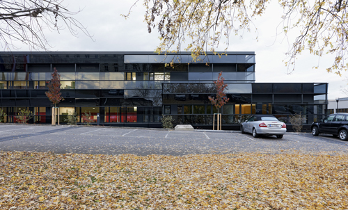 Die Eingangssituation wurde räumlich so verändert, dass nun eine klar lesbare Zugangsloggia im Inneneck zweier Baukörper den Ankommenden einlädt, und das Eintreten durch die niedrige geschützte Zone in eine hohe mit Oberlicht erhellte Halle zur spannenden Bewegungssequenz wird.