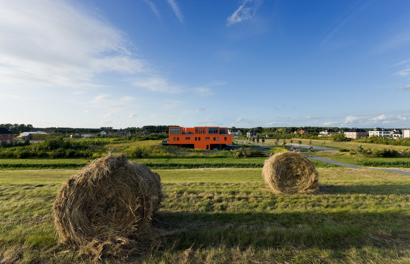 So gerät auch der Wohnbau Overgooi zur Villa. Fünf individuelle Wohneinheiten wurde für eine Gemeinschaft von privaten Auftraggebern in der Deichlandschaft von Almere errichtet, verpackt in einen villenartige Komplex, der von den Unterschieden der einzelnen Einheiten lebt.