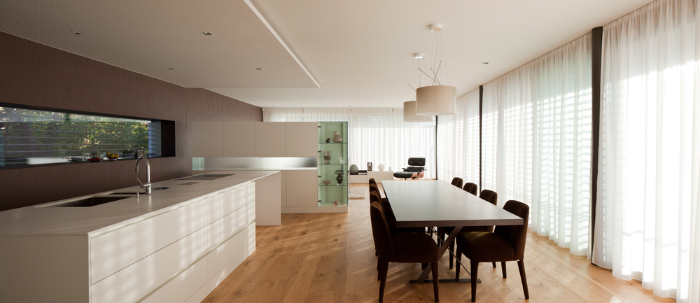 Das gesamte Innenraumkonzept durften wir ebenfalls für die Bauherren planen und umsetzen. Hier war unser Ziel, einen harmonischen Übergang von außen nach innen zu schaffen > zeitlos - modern - gemütlich. (Text: Architekten)