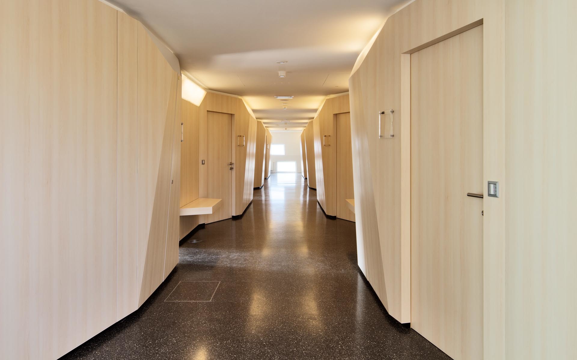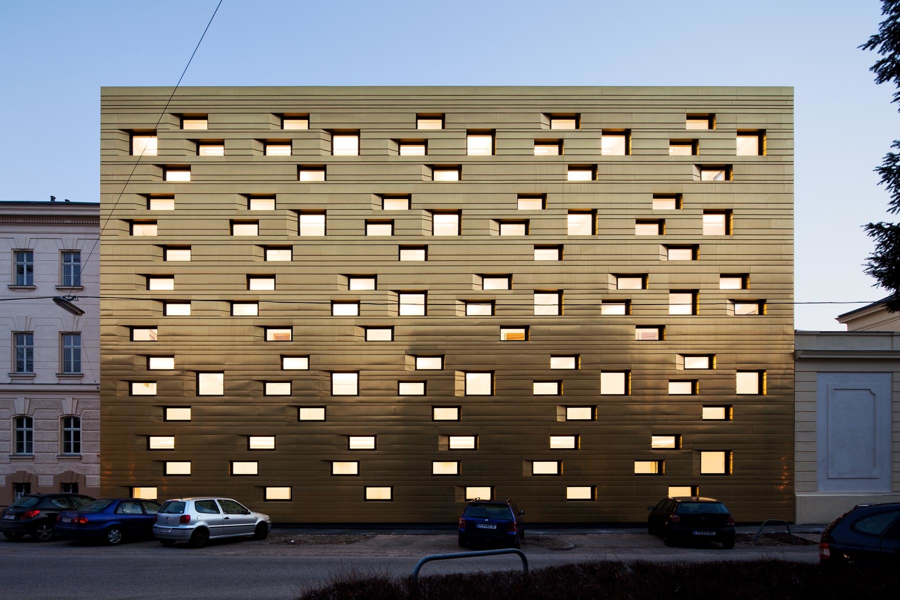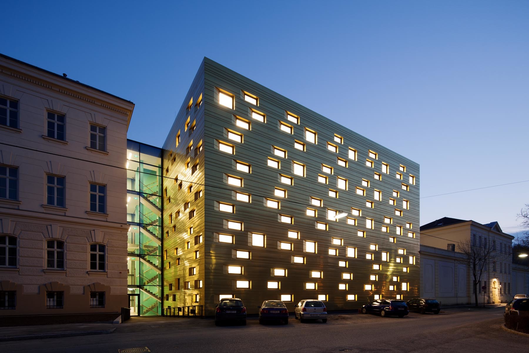 Städtebaulich schließt der neue Zubau die Lücke zwischen altem Gerichtsgebäude und der angrenzenden Justizanstalt in Form einer kohärenten Ergänzung des denkmalgeschützten Baus mit einem zeitgenössischen Zubau, der einerseits selbstbewusst und eigenständig als Solitär nach außen wahrnehmbar ist, zugleich jedoch den historischen Kontext respektiert und zwischen moderner und historischer Formensprache zu vermitteln vermag. Die drei Geschosse des Altbaus werden bei gleichbleibender Traufenhöhe barrierefrei mit dem neuen fünfgeschossigen Baukörper verknüpft, in dem in erster Linie Büroräume für das Oberlandesgericht, die Staatsanwaltschaft und das Bezirksgericht untergebracht werden.