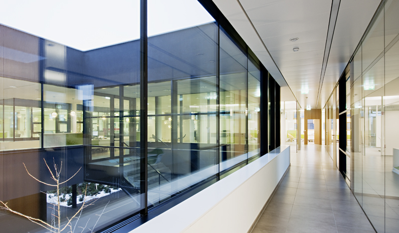 Durch die Typologie des Gebäudes entsteht eine Symbiose aus umlaufender und zentraler Erschließung. Die Vorteile sind eine hervorragende Orientierung bei gleichzeitiger guter Übersicht und kurzer Wegführung mit guten Querverbindungen innerhalb des Gebäudes.