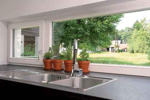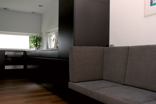 Die Faszination für die Möglichkeiten der Architektur erschließt sich durch jene wenigen klugen Eingriffe in die Struktur, die das kleine Gebäude für die Wohngewohnheiten in einem Ferienhaus unserer Gegenwart optimieren. Ganz elementar: Die vorhandene Stiege und eine alte Zwischenwand wurden entfernt, der neue Aufgang - um 90 Grad gedreht - wieder in den offenen Raum des Erdgeschosses eingesetzt. Die Wirkung ist überzeugend: Es entsteht ein logischer Bewegungsfluss vom Vorraum über den Wohn-Essbereich bis zur großzügigen Küche. Und das alles funktioniert, ohne zusätzliche Schwellen oder Barrieren. Die Stiege allein genügt, um den Rhythmus fürs Wohnen vorzugeben. Begleitend zu dieser Änderung mussten die alten Fenster versetzt werden, zwei zusätzliche Fensterbänder für die Küche eröffnen den „Werktätigen“ ein neues Panorama auf die sanfte steirische Hügellandschaft.