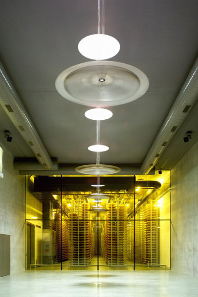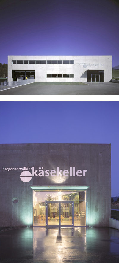 Man entschloss sich, für den beispielhaften Zweckbau einen Architekturwettbewerb auszuschreiben, um dem regionalen Produkt ein „Haus mit Identität“ zu geben und es im Bewusstsein der Öffentlichkeit zu verankern. Im Juli 2002 fiel die Wahl auf den Entwurf von Oskar Leo Kaufmann, im Oktober konnte nach sehr kurzer Planungszeit bereits der erste Spatenstich erfolgen. Der Zusammenhang zwischen dem Produkt, der Region und der unmittelbaren Umgebung bildet das Leitmotiv des architektonischen Gesamtkonzeptes: Ein klarer, solider Sichtbetonkörper von 80 Meter Länge versinnbildlicht den langen Reifungsvorgang des Bergkäses, und das Foyer mit dem Präsentationsraum steht mit dieser beeindruckenden Raumflucht - nur durch eine Glasscheibe davon getrennt - in direktem visuellen Zusammenhang. Die Büros im Obergeschoss sind im Gegensatz zu den geschliffenen Betonoberflächen des Reifekellers mit einer Holzschicht überzogen. Um die Identifikation von Bauwerk und Inhalt ironisch auf den Punkt zu bringen, ist die Betonfassade vereinzelt mit Käselöchern versehen. (Text: Gabriele Kaiser)