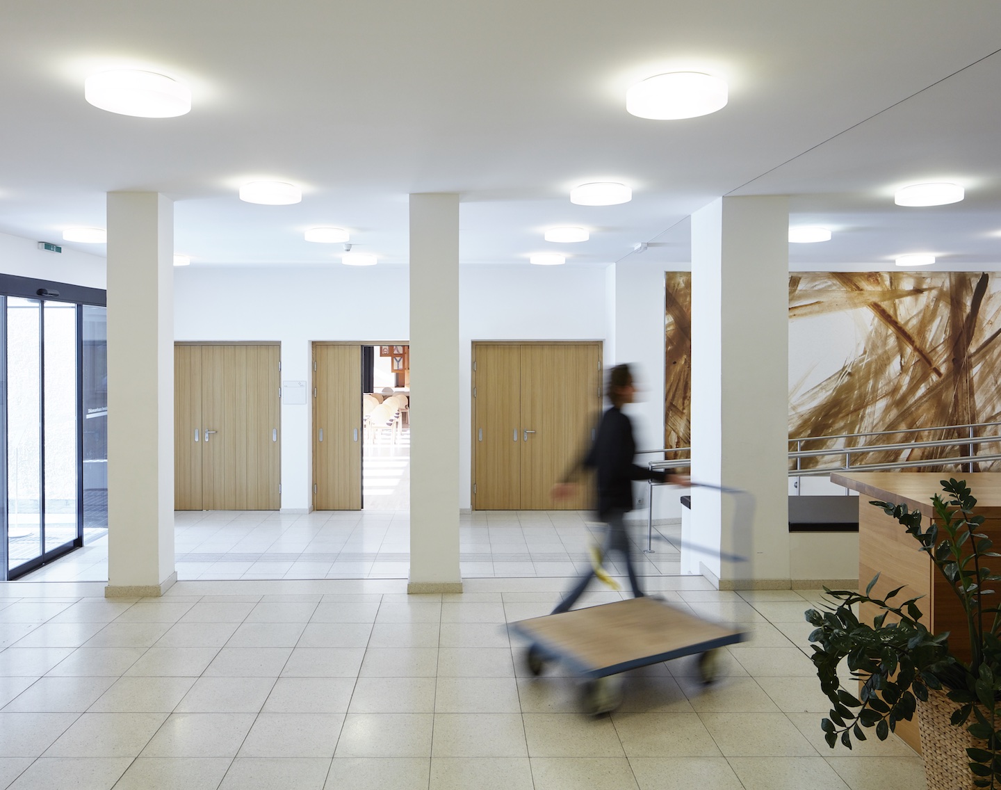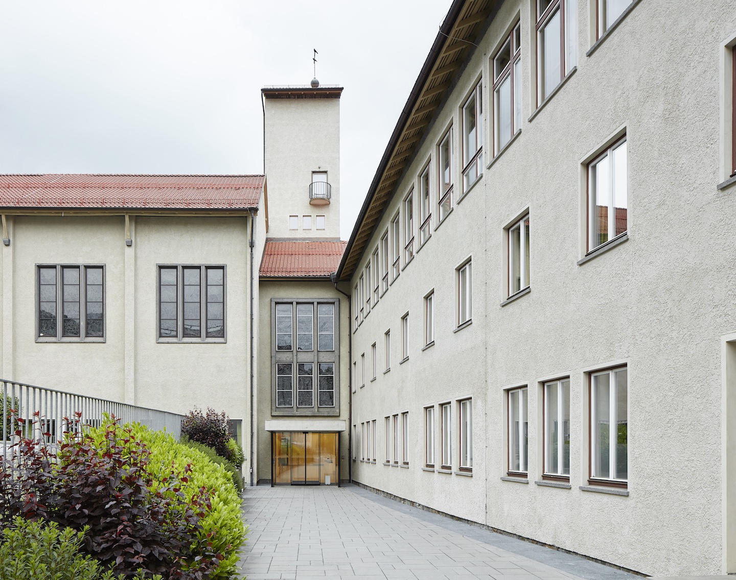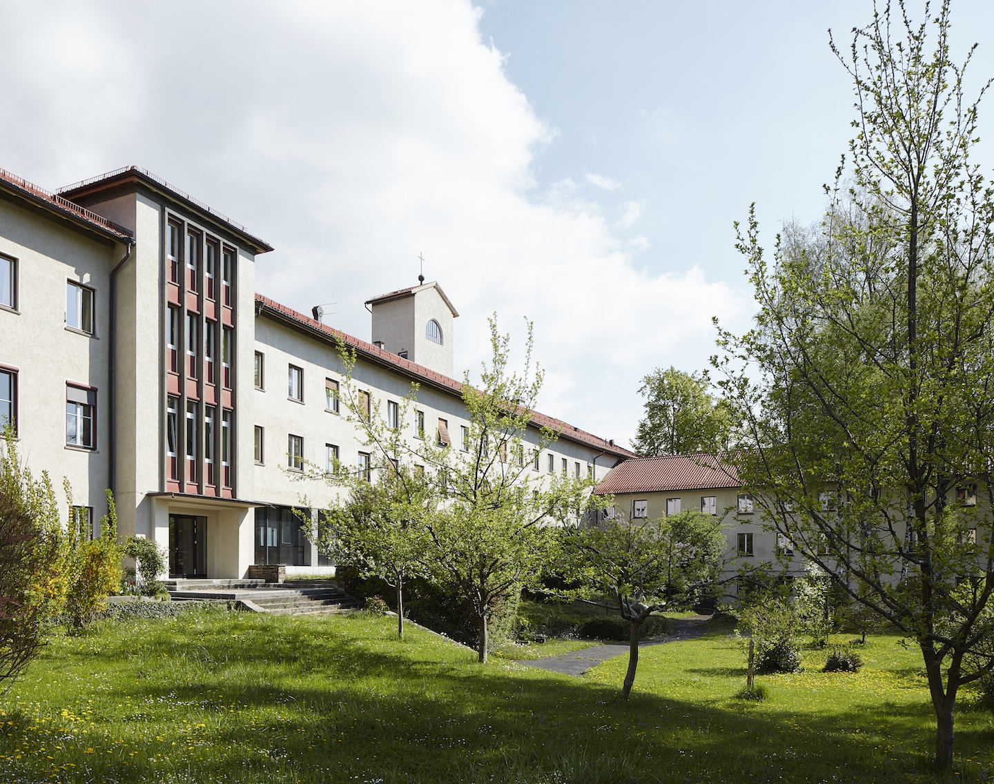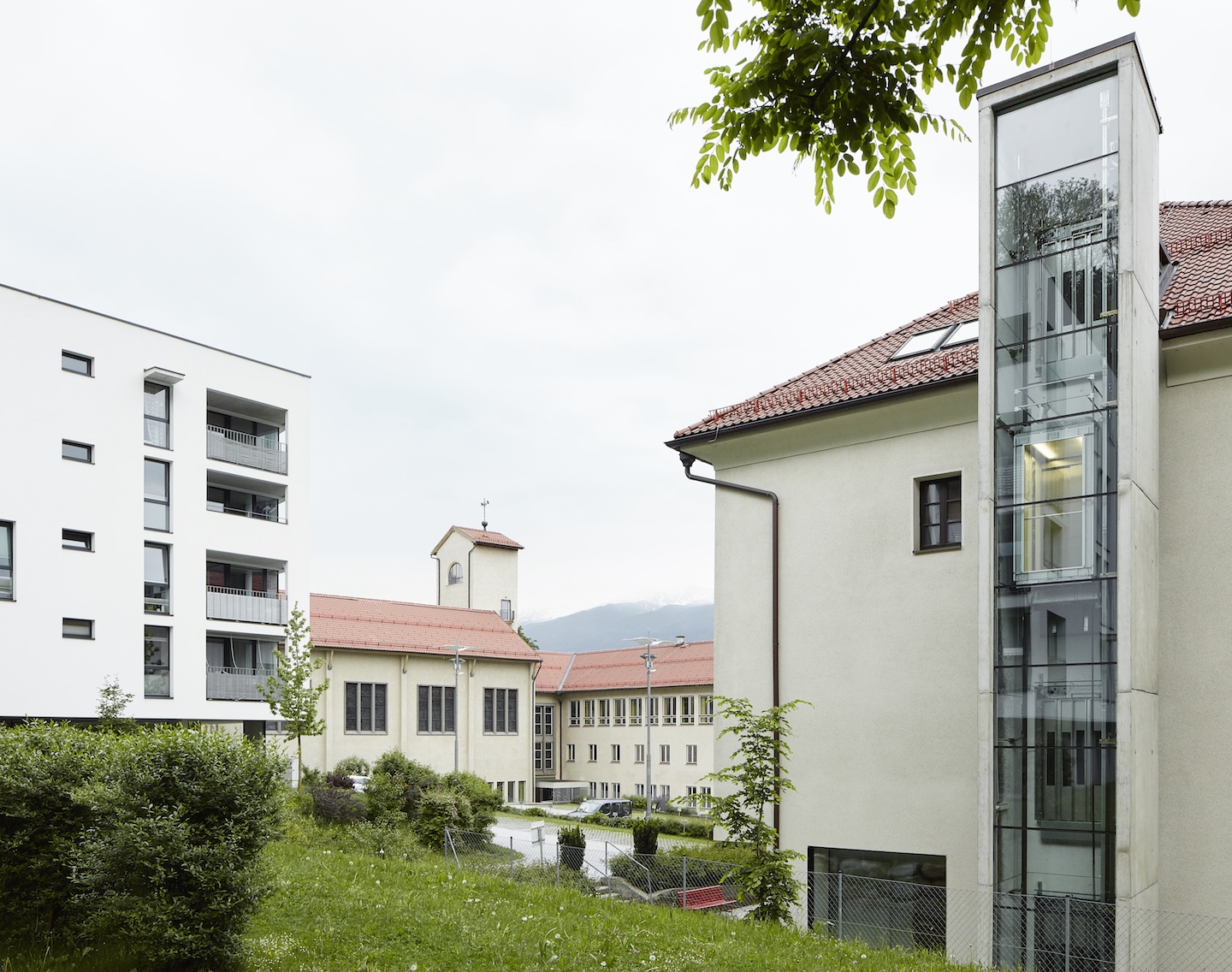 Um dieser neuen Verwaltungszentrale ein entsprechendes Raumangebot zu bieten, waren zahlreiche Umstrukturierungs- und Ausbaumaßnahmen notwendig, die gleichzeitig dafür genutzt wurden, das 1995 umgebaute und sanierte „Neururerhaus“ wieder möglichst auf sein ursprüngliches Erscheinungsbild rückzubauen. So wurde der Vollwärmeschutz zur Gänze entfernt und die Verglasungen in den Erdgeschossbereichen hinter die Fassadenebene verlegt, um den offenen Charakter der Loggien wieder spürbar zu machen. Untergeschoss und Obergeschosse wurden – bis auf den in sich geschlossenen Trakt des eigentlichen Priesterseminars – den neuen Funktionen entsprechend umstrukturiert und das Dachgeschoss zum Teil ausgebaut. Der Haupteingang wurde in den Kreuzungspunkt der Baukörper verlegt und durch einen großräumigen Foyerbereich erweitert. Die ältere Bestandssubstanz des „Jungmannhaus“ wurde ebenfalls saniert und adaptiert, u. a. wurde an Stelle eines eingeschossigen Anbaus ein neuer Lift errichtet. (Text: Claudia Wedekind)