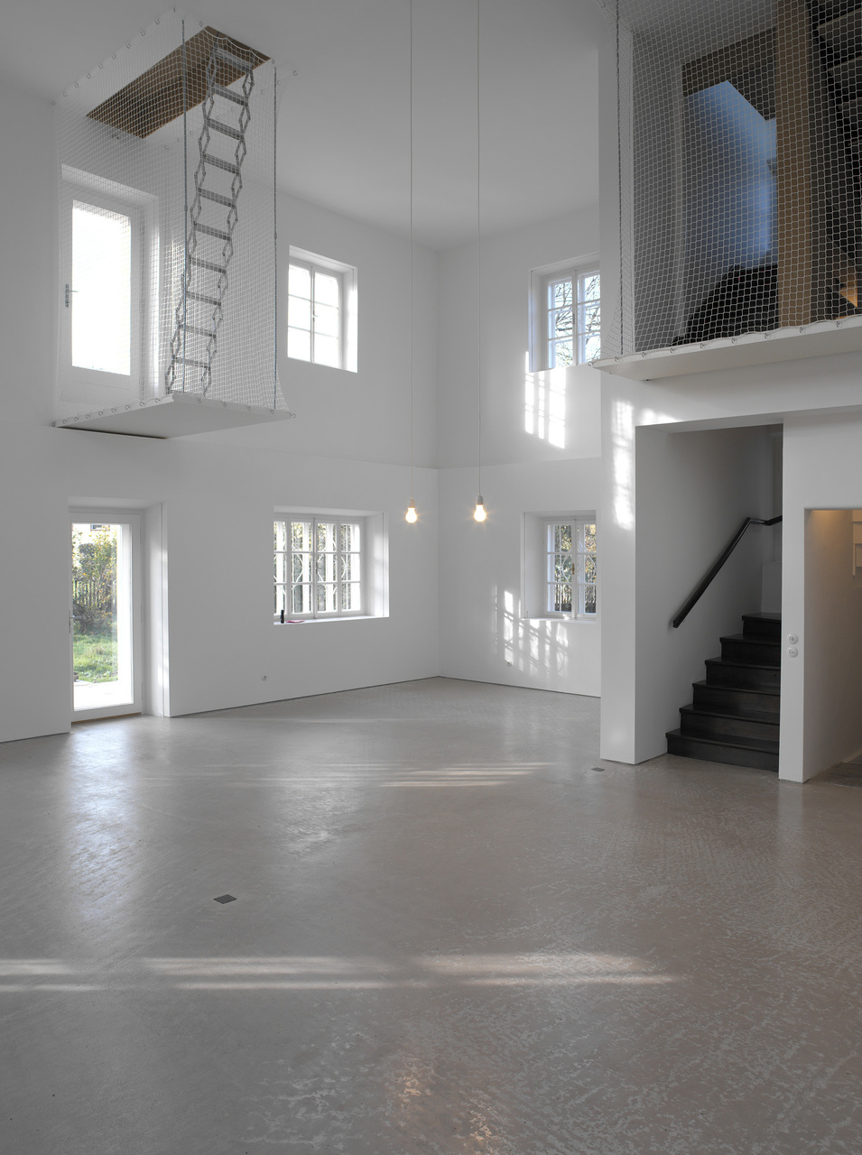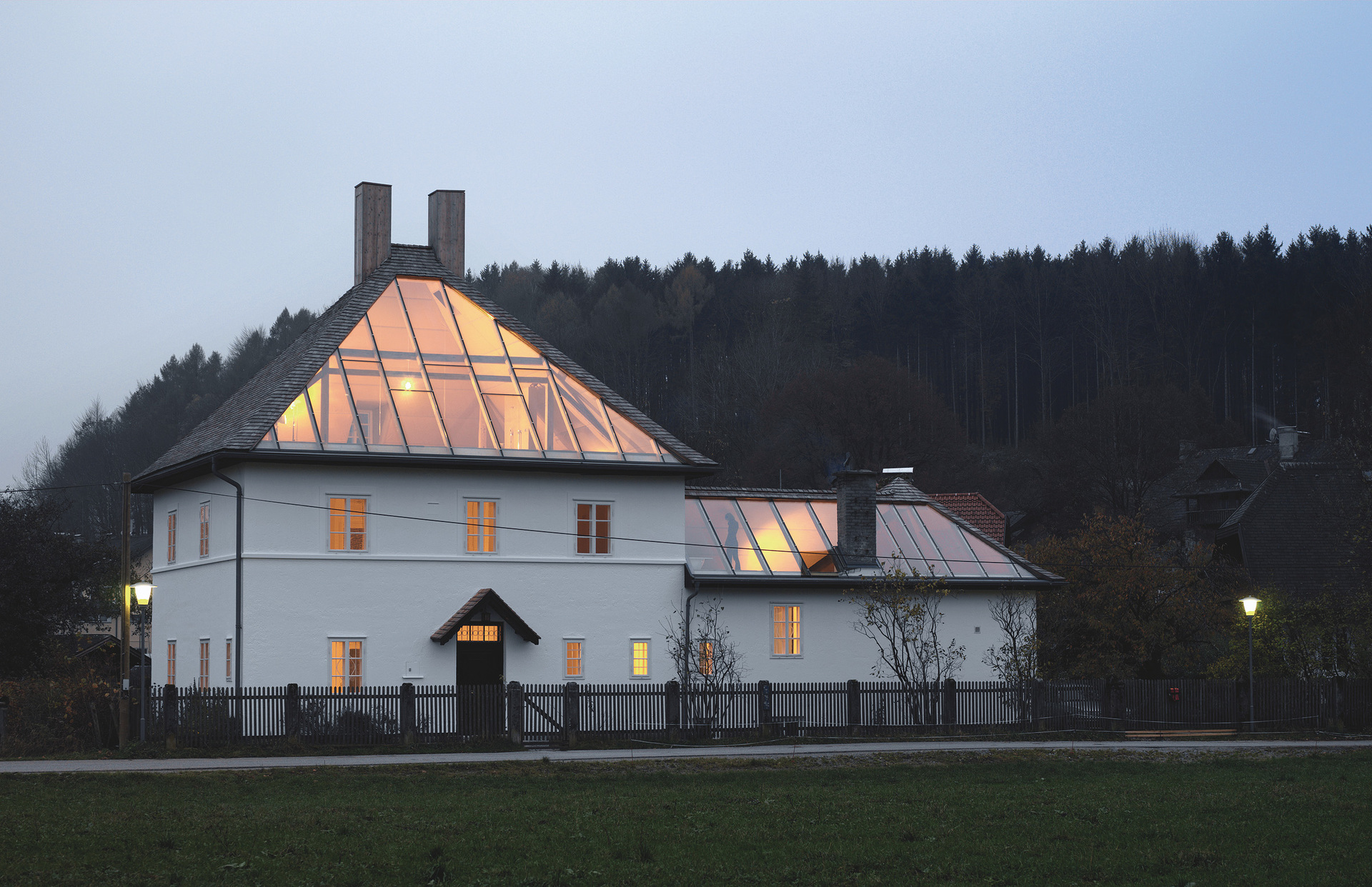 Architektin Maria Flöckner plante für sich und ihren Lebensgefährten den sensiblen Umbau eines 1914/1915 errichteten Würfelhauses. Maria Flöckner griff nicht in die Außenerscheinung des „Hexenhäuschens“ ein, vermied Vollwärmeschutz und eine Vergrößerung der bestehenden Fenster - und setzte anstelle der beiden gemauerten Kamine im nun mit Erdwärme versorgten Haus hölzerne Kamine für die Dachraum-Entlüftung. Statt der klaren Hausfigur eine „neue“ Gestik überzustülpen, agierte und entwickelte sie die Neustrukturierung aus den räumlich Potenzialen heraus. Das dezente Aufschneiden des Dachs im Norden, bündige Atelierverglasungen, bringen in Verbindung mit einem Aufschlitzen der Zwischendecke Licht in die Räume. Flöckner schälte durch Entfernen von Wänden und Decke in Erd- und Obergeschoß eine annähernd sechs Meter hohe Halle heraus. Kaum weniger hoch ist das freigeräumte „Zelt“ unter dem Dach als zweiter Hauptraum. Das warme Braun von Dachstuhl und Dampfbremse gibt dem Raum seinen Charakter, der im Winter bevorzugt wird. In der warmen Jahreszeit ist hingegen die kühlere Halle mit direktem Zugang zum Garten der Hauptaufenthaltsort.Naßeinheiten in diesen Räumen sind ebenfalls Ausdruck des Grundgedankens, den Handlungsspielraum für die Nutzung einzelner Bereiche möglichst offen zu halten. Maria Flöckner entwickelte ein räumliches Labor, eine offene Versuchsanordnung zur Beziehung und Verknüpfung von Körper und Raum durch Gesten und Handlungen.