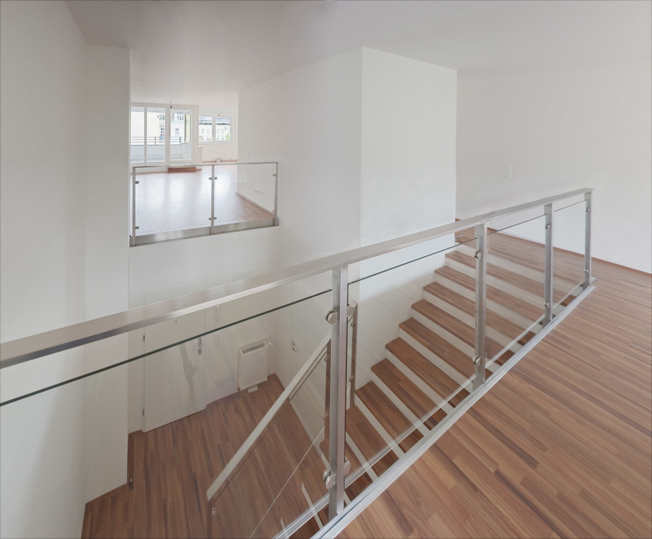 Jede Wohnung ist mit einer Loggia oder Dachterrasse ausgestattet - diese sind hauptsächlich nach Südwesten in den großen, begrünten Innenhof ausgerichtet.