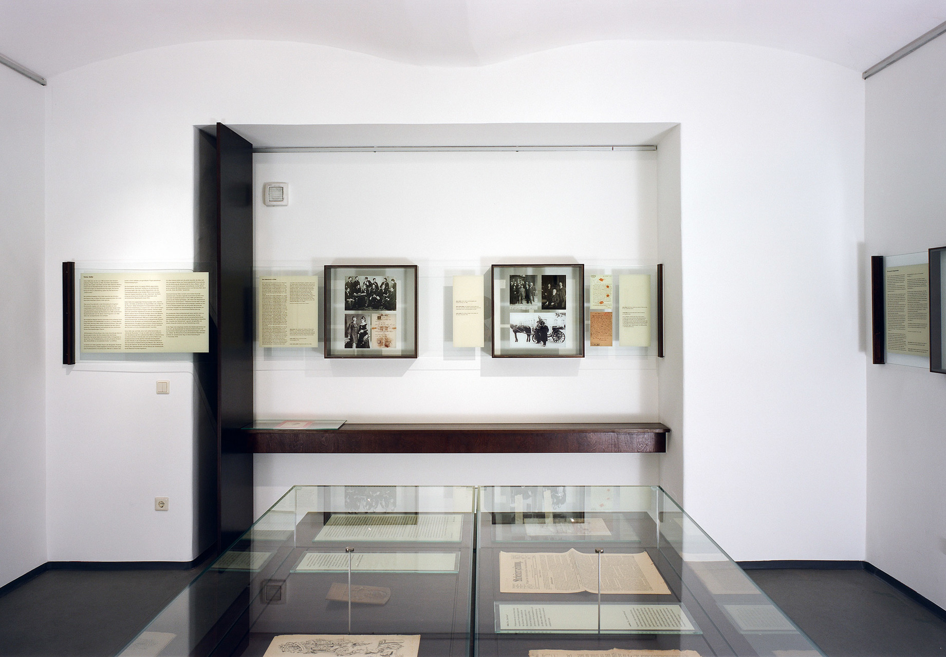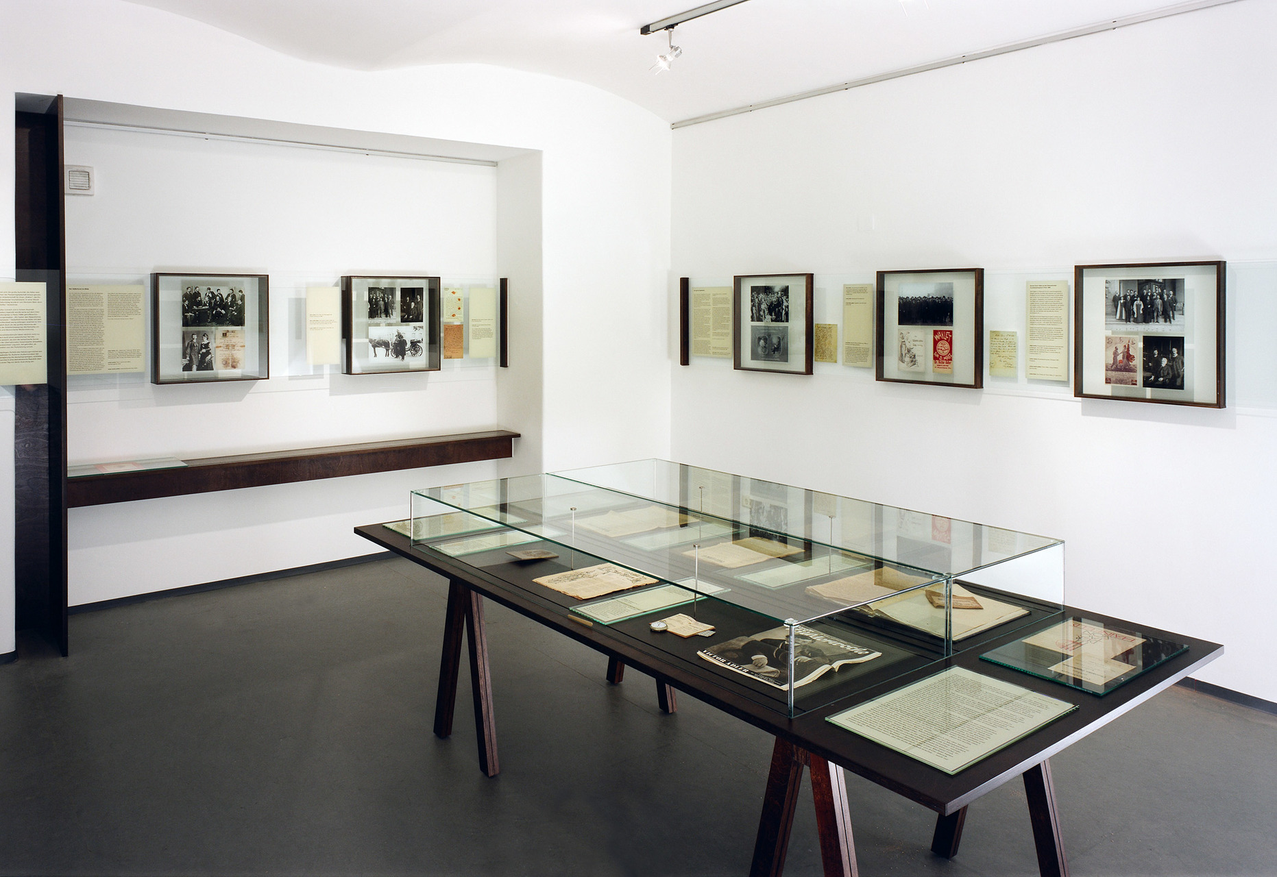 Für die Ausstellung stand das gesamte private Archiv von Victor Adler, aber auch das frühe Archiv der Sozialdemokratie zur Verfügung. Die Materialfülle bietet einen großen Vorteil für die Planung, indem alles sofort aufgelegt und direkt entschieden werden kann, ganz ohne lästiges Warten auf die Lieferung von Leihgaben. Die reichen Bestände bergen jedoch auch eine Gefahr, und zwar dass Besucher am Ende von einer Fülle an Materialien erschlagen werden. Der Architekt schätzt sich besonders glücklich, dass er für die Gestaltung auf eine sehr konzise Auswahl der Kuratorin zurückgreifen konnte. Nur so war es möglich, einen Raum zu gestalten, in dem Besucher:innen zu einer Auseinandersetzung mit den Inhalten eingeladen, ja mitunter sogar verführt werden. (Text: Martina Frühwirth)