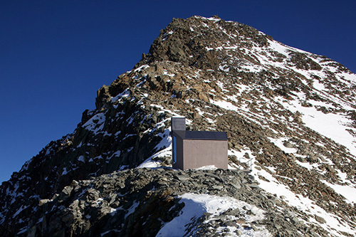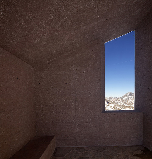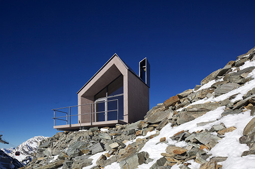 Mit der innen und außen in Form und Materialität sehr schlicht gehaltenen, kleinen Kapelle wurde somit ein Ort der Ruhe, Kontemplation und Erinnerung geschaffen – ein introvertierter Gegenpart zu der nicht weit entfernt kühn über den Abgrund auskragenden Gipfelplattform „Top of Tyrol“ von LAAC Architekten. (Text: Claudia Wedekind)