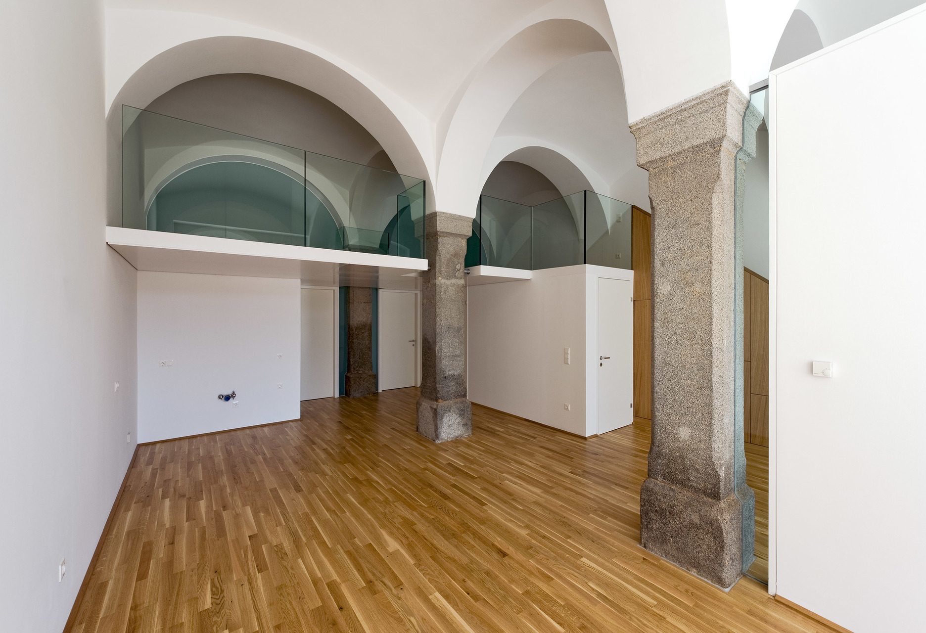 Im dritten Abschnitt werden im Westhof die ersten gewerblich genutzten Räumlichkeiten revitalisiert. Auch hier finden ähnliche Ansätze des Ein- und Zufügens von schlicht gehaltenen Gebäudeimplantaten, gleich der ersten Maßnahme, Anwendung.