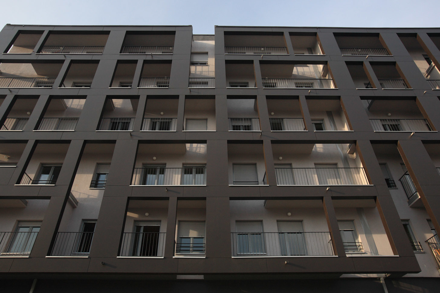 The City Plan envisaged closing Block 61 and the adjoining block by building along the street frontage. Aware of the impossibility of a balanced, integrated solution, re:a.c.t came up with a dual response to suit the setting: on one side the dominating mega-structures, on the other side the desired closed street facade, which in reality is highly dissected. The architects have produced a building that engages in a dialogue with the contrasting surroundings, turning a dynamic face to the street and a serene, light face to the mega-structures. Strict requirements with regard to internal layout did not allow much scope for experimenting. Nevertheless, wherever possible, the architects applied the flexibility principle and designed open-plan spaces that can be adapted to different lifestyles. Almost all of the 105 apartments have loggias, an important feature that brings the outside world closer to the inhabitants while simultaneously preserving their privacy.