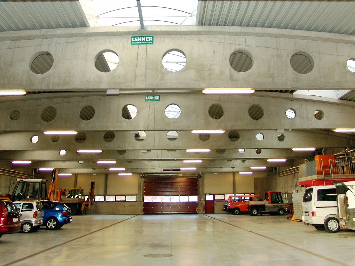 vorgespannte Betonträger in der stützenfreien Garagenhalle