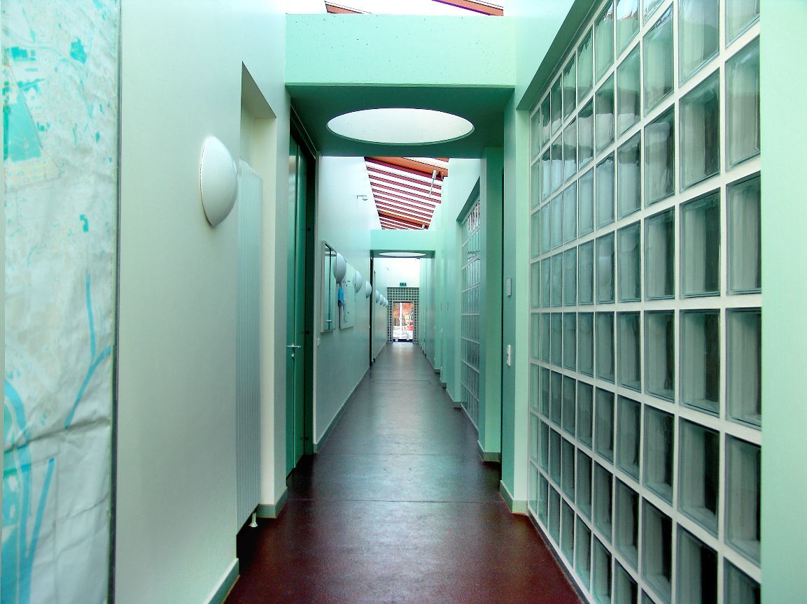 Innenwände Ziegel und Gipskartonständerwänden kombiniert mit Glasbausteinwandteilen