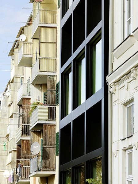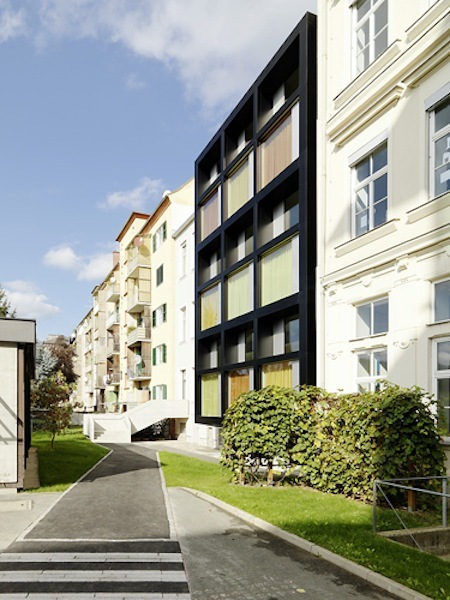 Ein Mauerdruchbruch am Ende dieser Gänge im 1. und 2. OG stellt die Verbindung in das neu gestaltete Gebäude her. Eine Erweiterung der Klassen an der Hoffassade bringt die erforderlichen Raumgrößen und ist als Zubau in Form großzügiger Veranden zu verstehen.