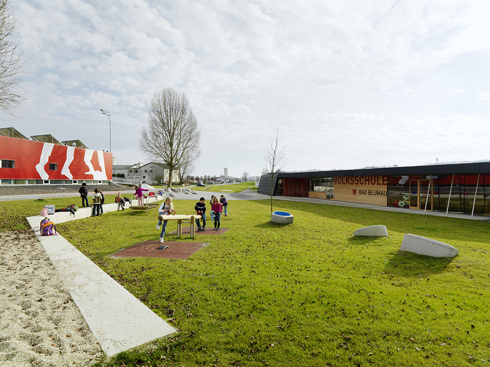 Das Projekt ist nicht nur das Ergebnis des im Jahr 2006 durch das Architekturbüro Feyferlik / Fritzer gewonnenen Wettbewerbs zur Neuerrichtung einer Sportanlage und Volksschule in Bad Blumau, sondern auch das Resultat einer anschließenden intensiven und direkten Auseinandersetzung mit den Anliegen und Wünschen aller Projektbeteiligten und Nutzer:innen.Die Baukörper der Volksschule und des Sportklubs sind raumbildend konzipiert. Einerseits zueinander, andererseits so, dass sie mit einer zukünftigen Bebauung nordwestlich von Schule und Sportanlage am linken Ufer des Safenbaches, visavis des Dorfzentrums, ein neues Ensemle bilden können.