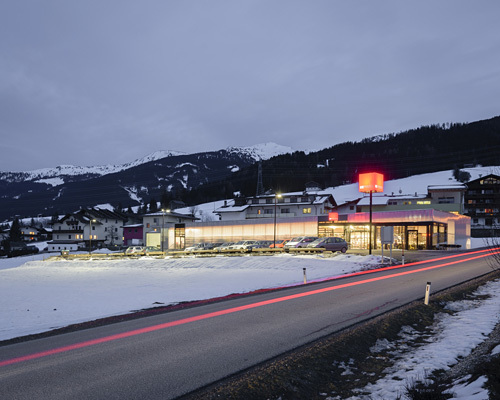 Was den Weerberger MPreis so einzigartig macht, ist, dass er bei jedem Wetter, jedem Licht, jeder Tageszeit, so völlig anders daherkommt. Die Durchlässigkeit seiner Haut sich ständig wandelt, einmal fast abweisend hermetisch das Innere vom Außen abschottet, um dann wieder Zonen des Fast-Durchsichtigen mit solchen des Dichten abwechseln zu lassen. Bei Dunkelheit verkehrt sich dagegen die Wahrnehmung total: wird der von innen erleuchtete Baukörper vollkommen durchlässig, verwandelt sich in eine Bühne für die schöne bunte Warenwelt. (Text: Edith Schlocker, Tiroler Tageszeitung, 6. 8. 2013)