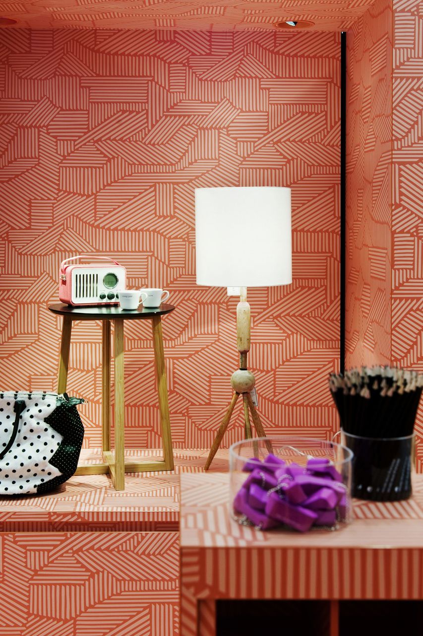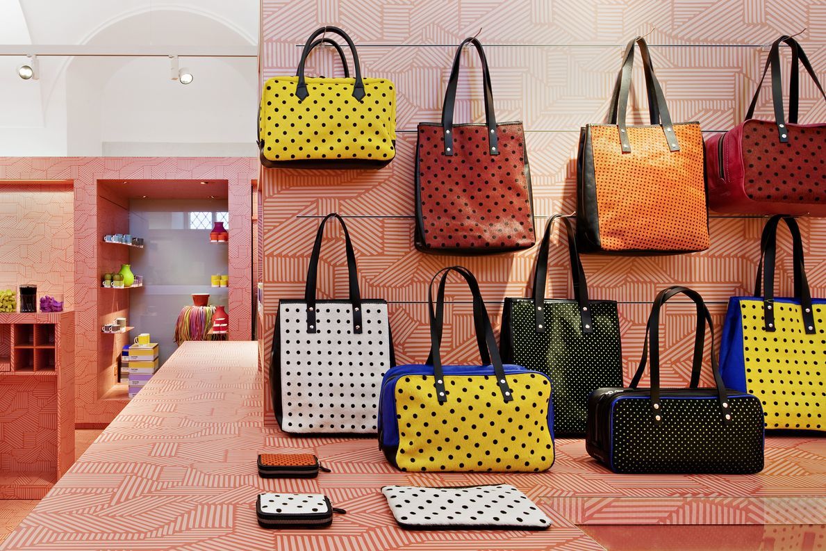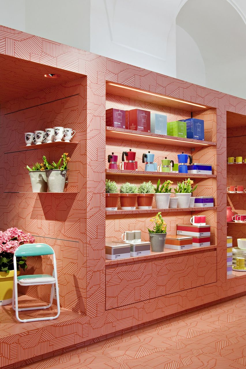 Wichtig für die Mitarbeiter ist der neu geschaffene Lagerraum hinter allen Fronten in Form von Laden und Schränken. Die Rotation der Designer-Ware im MQ Point ist hochfrequent, das ist Teil des Shopkonzepts. In kurzen Intervallen wird hier neue Ware präsentiert. Anders jedoch als in Geschäften, wo Kleidung auf Kleidung und Geschirr auf Geschirr folgt, gibt es hier kein durchgängiges Warenkonzept. D.h. auf Kleider können Kaffeekannen folgen, vielleicht aber auch Radios im Retrodesign. Damit die Mitarbeiter nicht die Nerven wegwerfen, kommt ein hochflexibles Regalsystem zum Einsatz. Vertikale und horizontale Wandschlitze bilden die Basis dafür. Haken werden mit einem Handgriff montiert, Boards einfach hineingeschoben oder Kleiderstangen an Halterungen verankert.