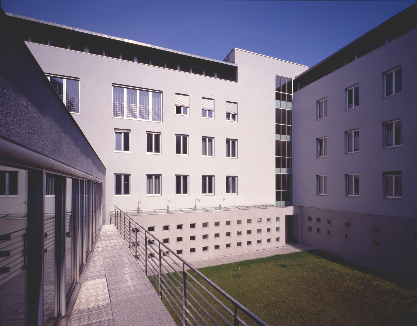 Die Franz-Josef-Straße anstelle der einstigen Befestigungen des 17. Jahrhunderts bildet als repräsentative Allee den zentralen „Ring“ der gründerzeitlichen Stadterweiterung des 19. Jahrhunderts von Salzburg. Zwischen der Mitte der 1980er und der 1990er Jahre waren die Gebäudetypologien des historistischen Gründerzeitrasters von besonderer Strahlkraft. Rob Kriers Siegerprojekt des vom Gestaltungsbeirat initiierten Fassadenwettbewerbs für das heutige NH Hotel (Nr. 26, 1988) wurde als „‚Original’ jener Fassadenarchitektur, die bis dahin angestrebt, aber nicht erreicht wurde,“ gefeiert. Die anderen Neubauten Nr. 9 und 15 plante Robert Wimmer. Beim Büro- und Geschäftshaus Paris Lodron Center (Nr. 22) vermied der Salzburger Architekt postmoderne Plakativität. Mit horizontal fein strukturiertem Natursteinsockel und hellgrau gefärbter Loch-Fassade integrierte er den Baukörper in den Kontext. Die Zäsur der Glasfassade des attraktiven Stiegenhauses lockert das hakenförmige Eckgebäude in zwei Volumina auf, die sich zur Paris-Lodron- oder Franz-Josef-Straße orientieren. Ein aufgeständerter, eingeschoßiger Baukörper bildet eine ruhigen, begrünten Hof. (Text: Norbert Mayr)