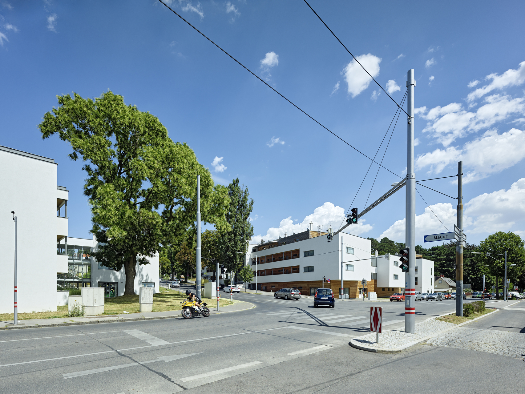 Der Wohnbau ist als Niedrigstenergiehaus konzipiert und als Holzmassivbau mit Brettsperrholzelementen ausgebildet. Das TG, teilweise das EG, sowie die Stiegenhäuser und Liftschächte sind in Massivbauweise ausgeführt.