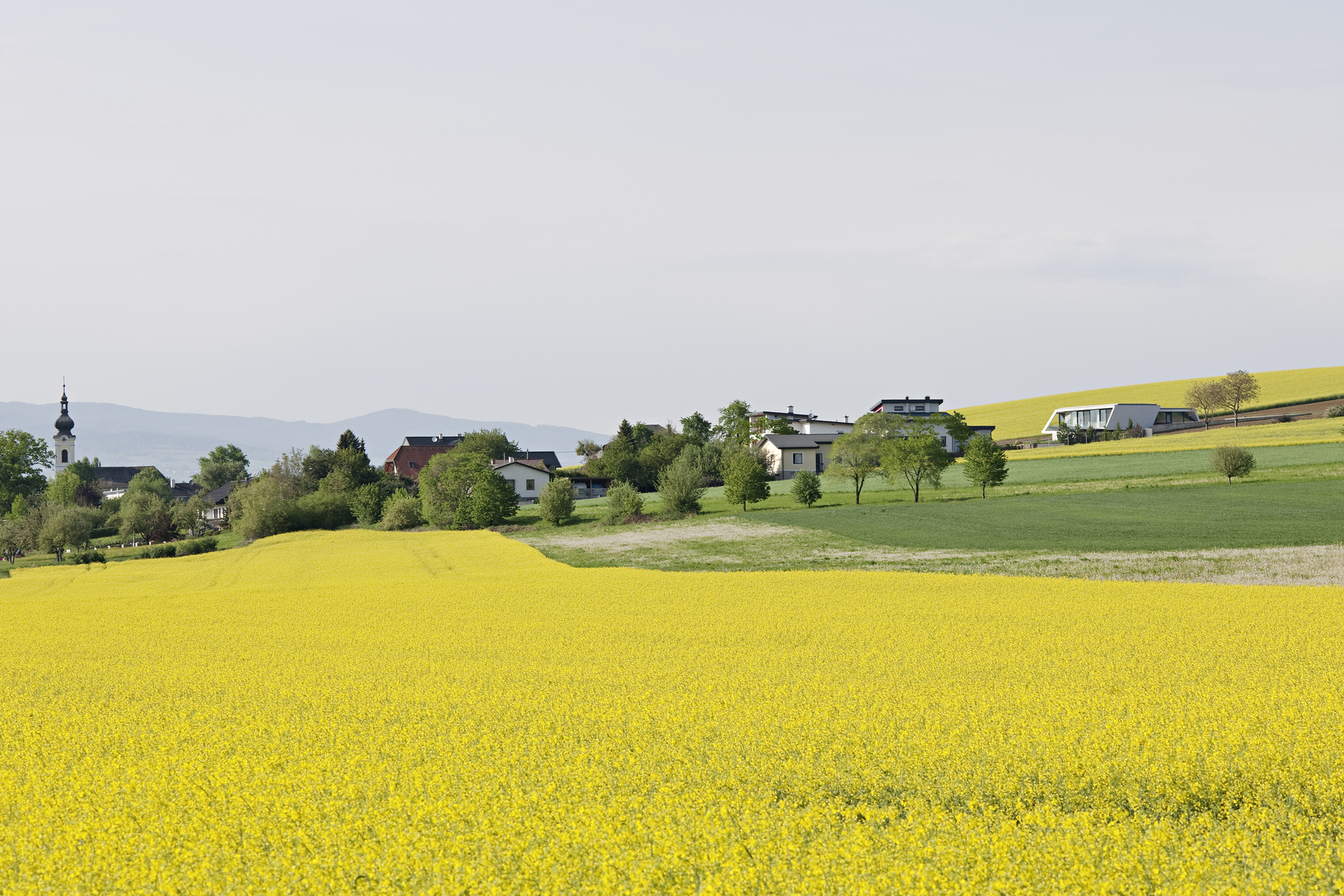 Das neue Zuhause einer jungen Familie fügt sich großzügig angelegt, am Rande einer kleinen Siedlung im Südburgenland, harmonisch in die Hügellandschaft ein. Der traditionell-regional weit verbreitete Grundriss-Typus verbindet auf weitergedachte Art und Weise moderne Wohn-, Energie- und Lebenskonzepte. Zeitgemäße und auf den Menschen bezogene Architektur, die sich in die ländliche Umgebung ganz selbstverständlich einfügt. Das Gebäude spiegelt durch Licht und Leichtigkeit die Lebensweise der Bewohner wider, denen Wohnqualität, Nachhaltigkeit, Gestaltung und Funktionalität im Alltag wichtig sind.L-Form