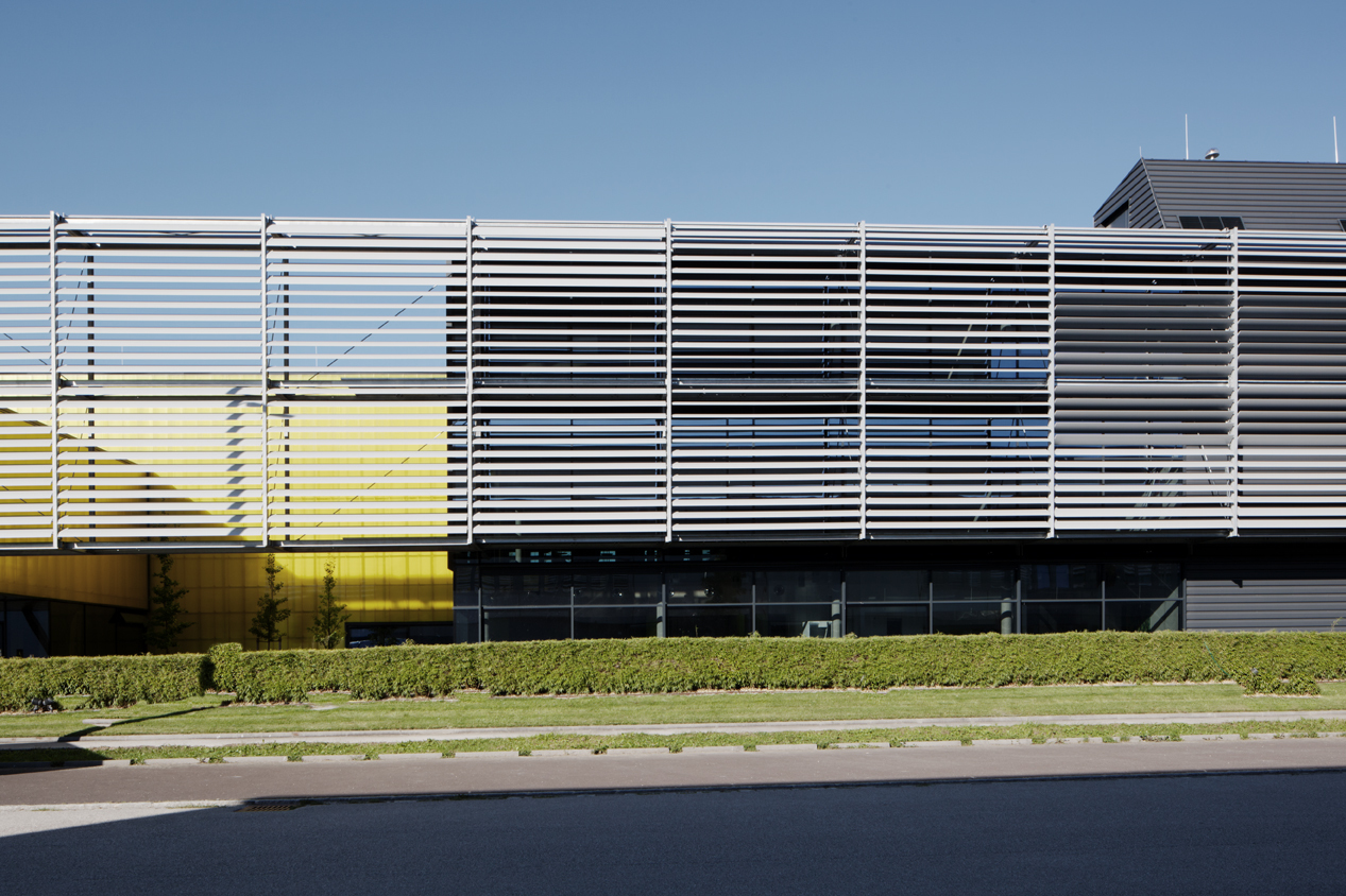 Die Betriebserweiterung zeichnet sich neben einem optimierten Produktionsablauf durch eine energieffiziente Bauweise aus. Jeder Bauteil hatte neben seinem architektonischen Wert eine Aufgabe in Sachen Energieoptimierung zu erfüllen. Die hochwärmegedämmte Gebäudehülle ist optimal der Sonne nach ausgerichtet. Wärmeeintrag findet dort statt, wo er Energietechnisch brauchbar ist, Lichteintrag passiert zusätzlich über Nordsheds, damit kein Überhitzen im Inneren stattfindet. Die Wärmepumpe erzeugt mit dem Wasser der hauseigenen Brunnenanlage die Heizenergie für den Winter. In den Sommermonaten wird das Brunnenwasser zur Kühlung der Büroräume über Bauteilaktivierte Stahlbetondecken verwendet. Die Oberlichtsheds sind öffenbar, sodass eine nächtliche Luftspülung die Hitzespitzen der Sommermonate weglüftet. Die mittels Wärmetauscher kontrollierte Belüftung sorgt für optimale Raumluftverhältnissen. Eine Tageslichtsteuerung regelt den Einsatz von Kunstlicht. (Text: Architekten)