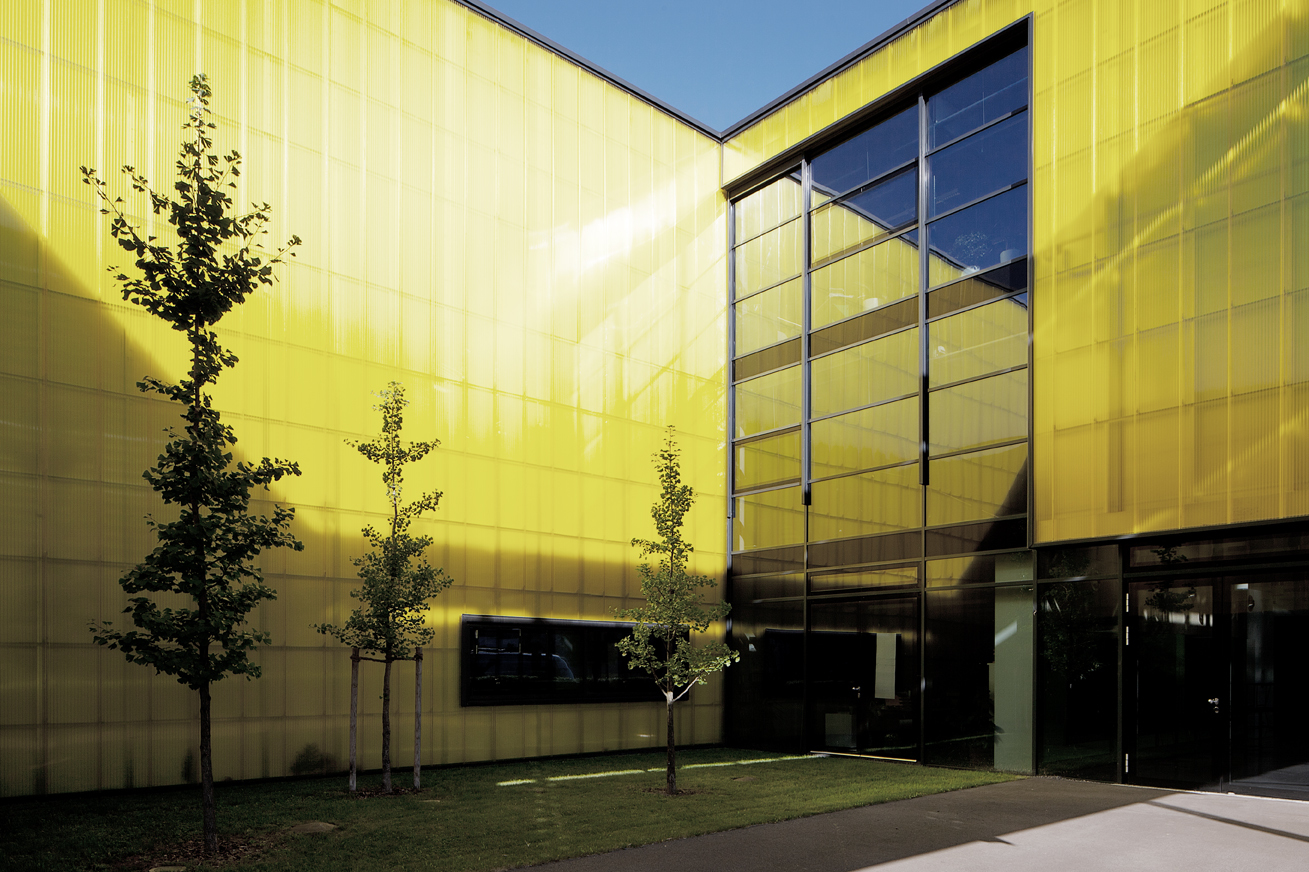 Der Bestand wird als erste Baustufe eines künftigen Endausbaus verstanden, die gegenständliche Erweiterung als zweite Baustufe. Um ein fragmentiertes Erscheinungsbild zu vermeiden wird die Architektur des Bestandes weitergeführt. Im Endausbau der noch möglichen Baustufen ergibt sich ein klar gegliederter Industriebau, dessen Schichten in Ihrer Abfolge mit einer klaren und reduzierten Lamellenfassade beginnen und zur Produktion hin differenzierter werdend mit der zweckmäßig-informellen Zone der Hallen endet.
