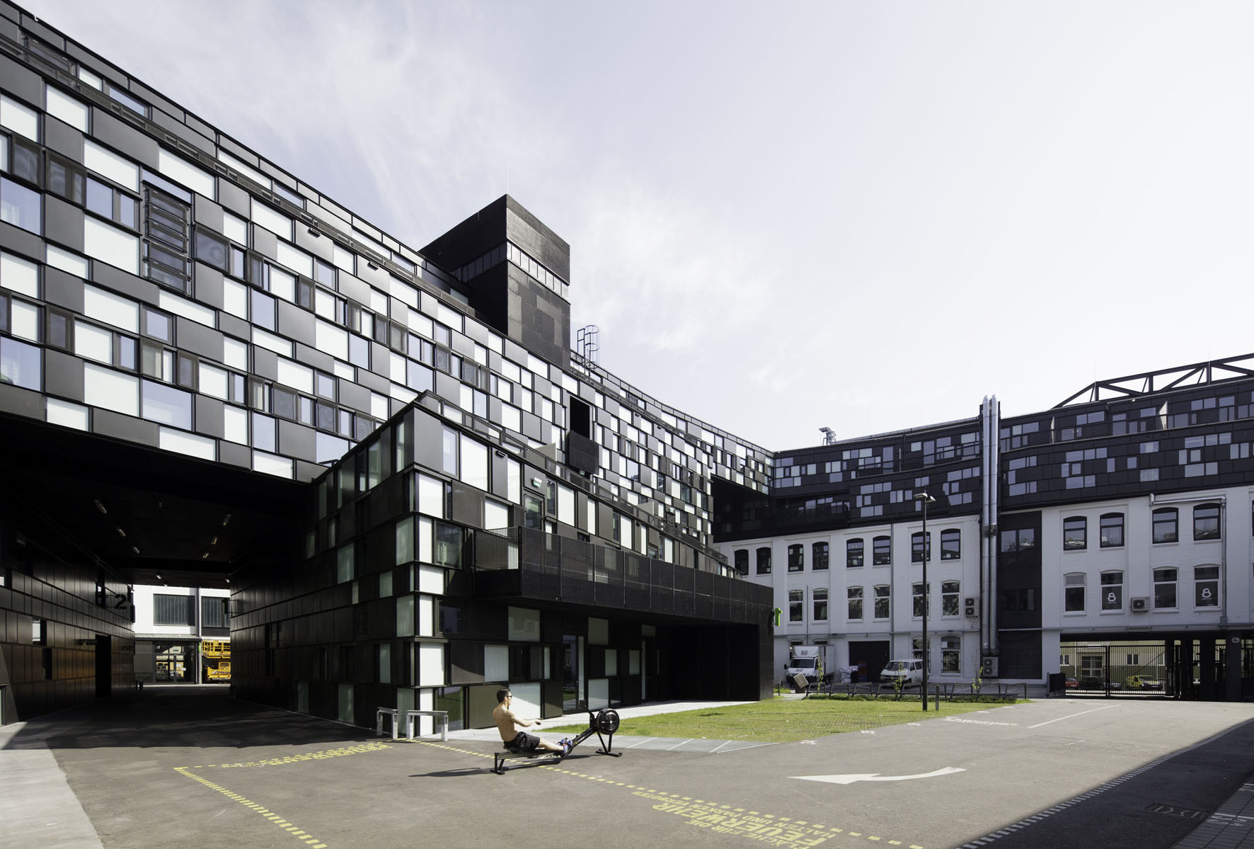 Das Projekt umfasst 10 Einheiten zwischen 118 und 312 m² Nutzfläche, wovon 8 Einheiten zweigeschossig ausgeführt wurden. Die Maisonetten sind für reine Büronutzung auf der unteren Ebene ausgelegt und erhalten eine Wohnatelierfunktion samt Nasszelle auf der oberen Ebene. (Text: Architekten)