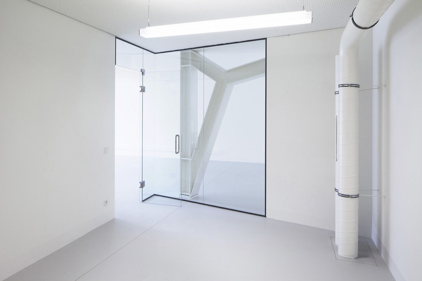 Im Innenraum ist für den Betrachter keinerlei Vertikalität erkennbar, vielmehr ist der Eindruck eines Regales ablesbar. Das Ergebnis wird als intelligente Low Tech Haltung „gelesen“ und selbst in diesem Maßstab ist die bewusste Thematisierung des Handwerkes - die Sichtbarmachung der Produktionsfertigung - in Anlehnung an die Genesis des Standortes abgebildet.