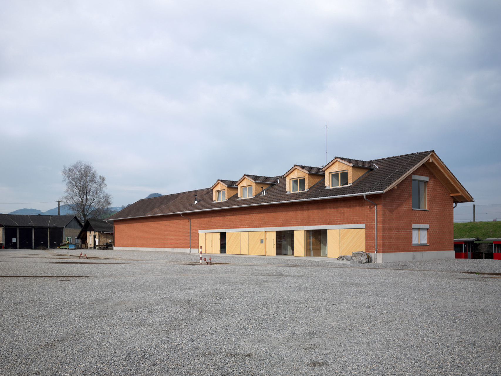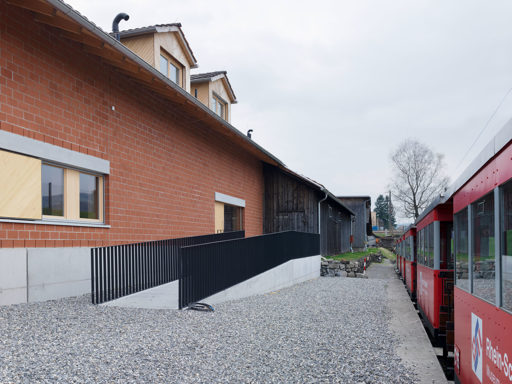 Die bestehende Kubatur bleibt unverändert, innen wird komplett umgebaut: Im Erdgeschoß Büros für die österreichische Rheinbauleitung bzw. Kommandozentrale im Notfall; Im Obergeschoß ein Seminarraum für Schulungen und Informationen bzw. das Krisenzentrum, jeweils mit den entsprechenden Nebenräumen. Im südlichen Teil bleibt der Ausstellungsbereich Rhein-Schauen. Es wird bis auf den alten Kettenkran ausgeräumt; Boden Grau, Wände schwarz. In der Mitte steht ein Eisenbahnwaggon, der auf den Schienen ins Freie geschoben wird, wenn im Zusammenhang mit dem Rhein- Ausbauprojekt RHESI - RheinErholungSicherheit flexible Museumsgestaltung gefragt ist. Die Eingangssituation ist neu gelöst, früher gab es nur Garagentore. Die Wartehalle, die jeder passieren muss um zum Bahnsteig des Rhein-Bähnles zu gelangen, wird zum „Erlebnisraum Bahnhof“. An der Fassade erinnert Sichtklinker in Format und Farbe an die ursprünglich unverputzten gebrannten Tonziegel aus dem Brugger-Loch. Auch die Gaupen bleiben an denselben Stellen und dienen hauptsächlich der Lichtführung, für die Aussicht liegen sie zu hoch.