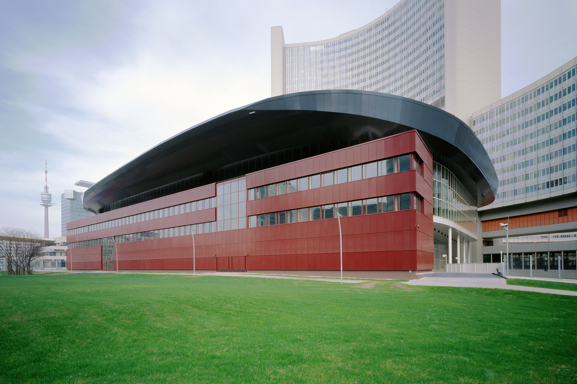 Das Konferenzgebäude VIC-M, eingebettet zwischen dem Austria Center Vienna und dem Vienna International Centre (VIC, auch bekannt als UNO-City), ist funktional gesehen Teil des geschlossenen Bereichs um das Vienna International Centre. Von seiner Lage dient das Gebäude als Bindeglied zwischen den Territorialgrenzen. Mit seinem Erscheinungsbild reagiert es auf die Formensprache des Vienna International Centre, bricht jedoch aus der geometrischen Strenge aus, tritt in einen Dialog mit der Umgebung und präsentiert eine zeitgemäße Interpretation derselben. Im Gegensatz zu den umliegenden Bauten, die geprägt sind von einer gewaltiger Höhenentwicklung, sticht der Neubau durch seine niedrigen, flachen Strukturen hervor und gleicht einer dynamischen, kontrastreichen Insel inmitten eines Meeres von Hochhäusern. Das signifikante Dach bildet die fünfte Fassade und repräsentiert das Gebäude nach oben. Der Entwurf nimmt damit Bezug auf die Betrachterebenen der umliegenden höhergelegenen Büros.Der Bürotrakt im Süden stellt eine Abgrenzung zur Außenwelt dar, während sich das Gebäude zum Vienna International Centre hin öffnet. Der kompakte Kern und die fließende, transparente Umschließungshülle bestimmen die Außenwahrnehmung. Der Baukörper wird von einer Alu-Glasfassade umhüllt, die in ihrer Gesamtheit explosionssicher ausgeführt wurde und dennoch ein Höchstmaß an Transparenz gewährleistet.