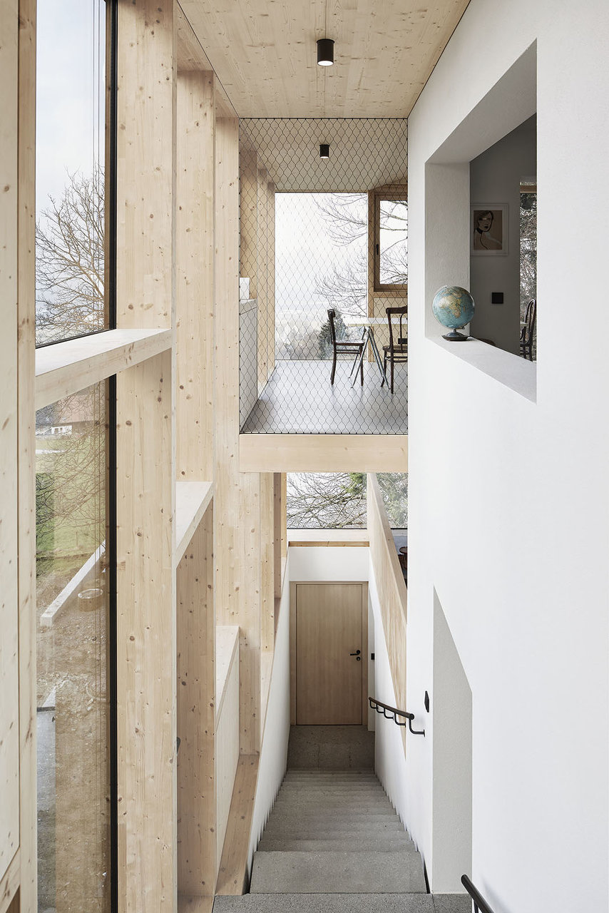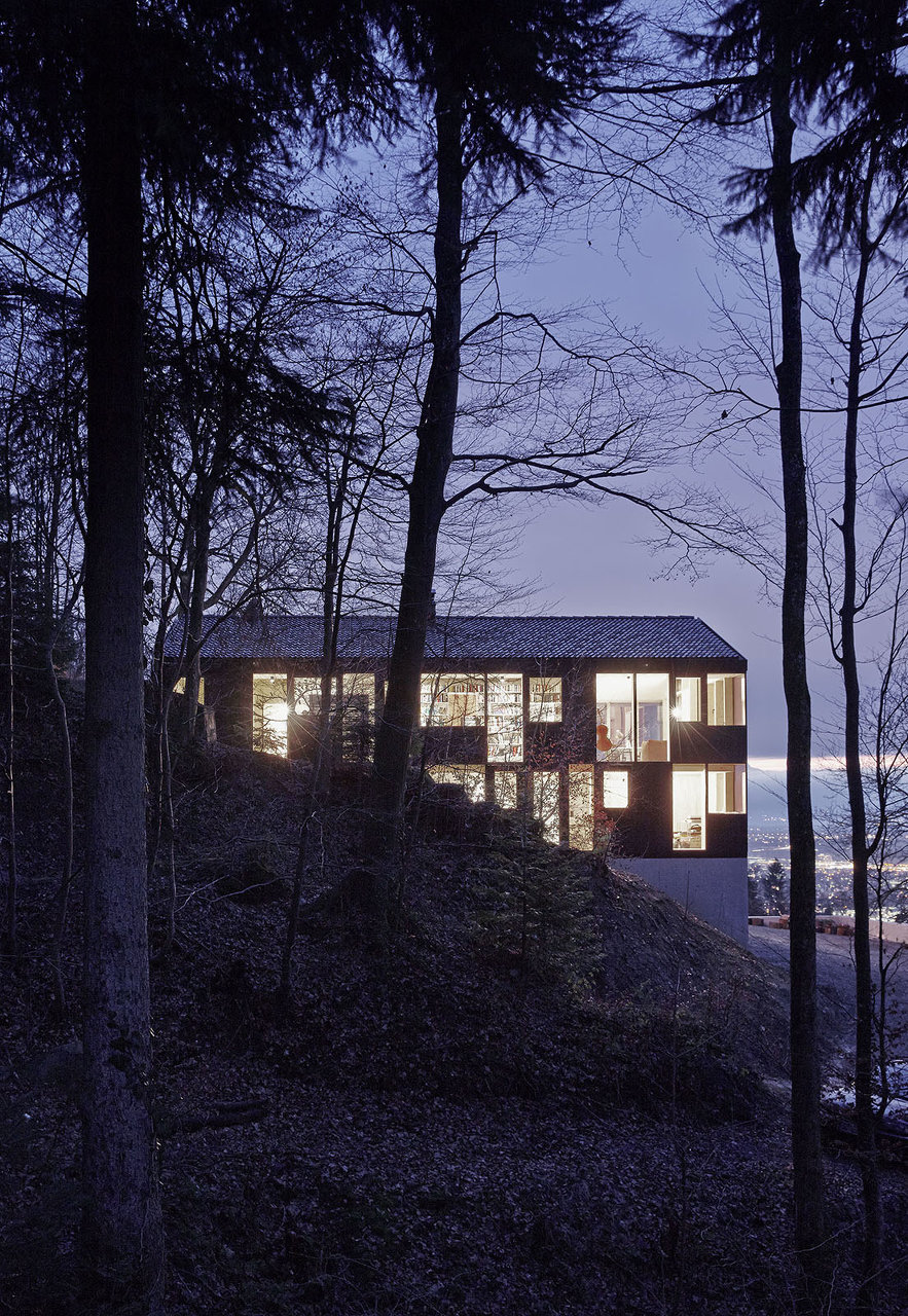 Die Lösung ist so einfach wie genial: Der Bestand bleibt in seiner Grundstruktur, seinen wesentlichen Öffnungen und tragenden Wänden bestehen, wird grundrisstechnisch neu geordnet und bekommt eine zweite Hülle in Form einer Holzkonstruktion übergestülpt. Diese bringt ein wesentliches Mehr an Fläche und überzeugt zudem durch eine energieoptimierte Holzkonstruktion. Diese ist, in ihrer Ablesbarkeit der Pfosten- Riegel-Konstruktion und großartigen Transparenz, wunderbar neuordnend. Und der Blick ins Tal schein jetzt noch schöner... (Text: Vorarlberger Holzbaupreis 2015 - Begründung der Jury)