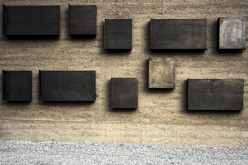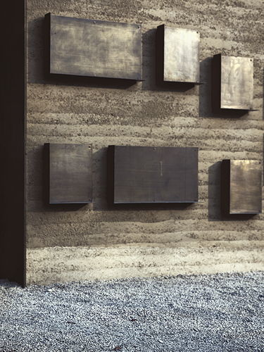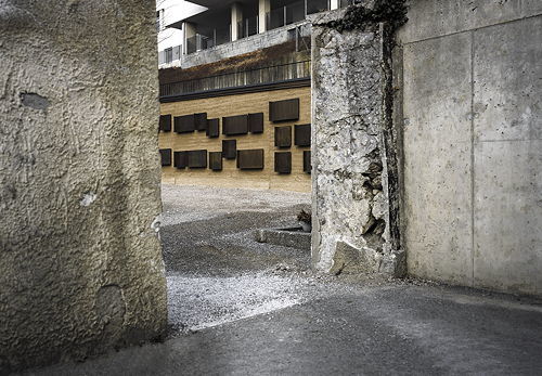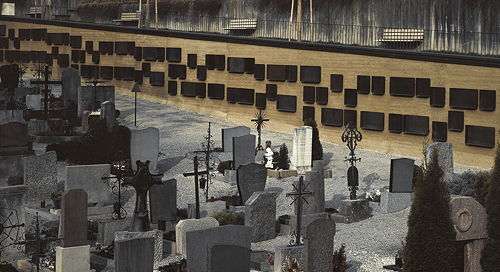Der Friedhof Hötting grenzt im Norden an die erhöht liegende, mehrteilige Baumasse des Wohnheims Hötting, dazwischen verläuft auf Höhe der Mauerkrone der Friedhofsmauer ein Fußweg in einem Grünstreifen mit Baumbepflanzung. Die an dieser stadträumlich wichtigen Schnittstelle liegende, bisherige Stützmauer wies statische Mängel auf und musste saniert werden. Damit bot sich aber auch die Möglichkeit, auf den stetig steigenden Bedarf an Urnengräbern zu reagieren und in den Mauerneubau Urnennischen zu integrieren. Für die Gestaltung der Friedhofserweiterung wurde von der IIG ein geladener Wettbewerb ausgeschrieben, den Renate Benedikter-Fuchs mit ihrem Vorschlag gewinnen konnte.Als Inspiration für ihren Entwurf eines Kolumbariums in einer Stützwand dienten die unregelmäßig angeordneten Felsgräber, wie sie etwa in Steilhängen in der Türkei anzutreffen sind. Vor die erforderliche Stützmauer aus Stahlbeton ist eine 50 cm starke Stampflehmwand mit den entsprechenden Ausnehmungen für die Urnennischen gesetzt. Die Nischen variieren in ihrer Breite und sind unregelmäßig entlang der Mauer angeordnet, woraus sich zusammen mit der Struktur der Lehmmauer selbst ein sehr lebendiges Erscheinungsbild ergibt. Die Urnennischen, ihre Abdeckung und das Ablagebord sind in brüniertem Messing ausgeführt, ebenso die die Lehmwand und die von dieser als verlorene Schalung genutzte Stützmauer abschließende Platte und das entlang der Mauerkrone geführte Geländer. Durch die platzsparende Lösung der nicht in der Tiefe, sondern in der Breite variierenden Urnennischen, konnte für die Baumbepflanzung und den Grünstreifen hin zum Altersheim 30 cm mehr Raum gewonnen werden.