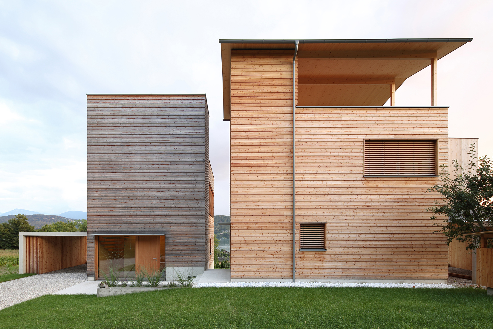 Ein Versuch minimalen öffentlichen Raum im Privaten zu schaffen. Einen Zwischenraum der einlädt und der den zwei Häusern die Möglichkeit gibt eigenständig zu sein und gleichzeitig in Beziehung zu treten - „ein vertrautes Miteinander, statt dem üblichen, anonymen Nebeneinander“ (Auszug Jury LBP Kärnten ´16)