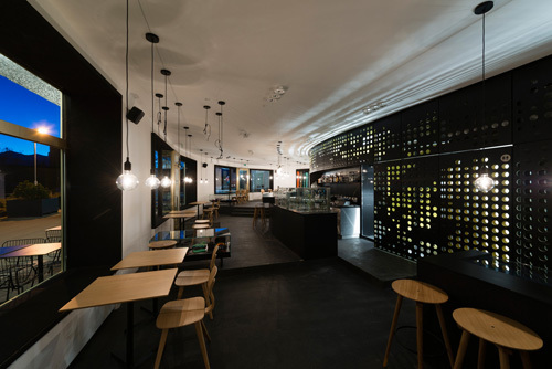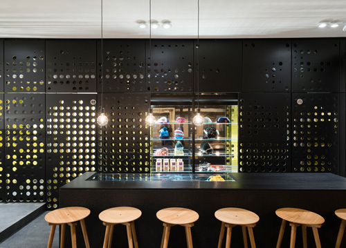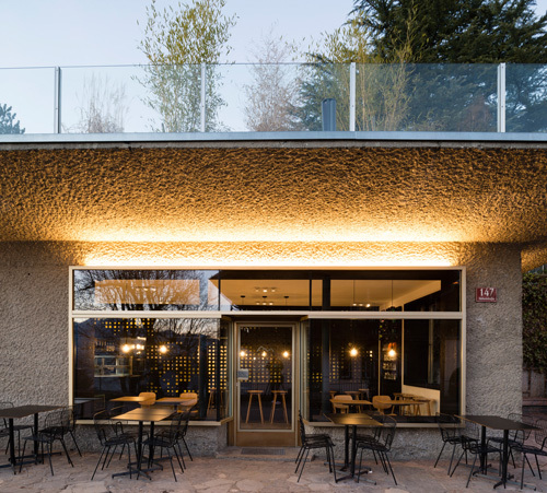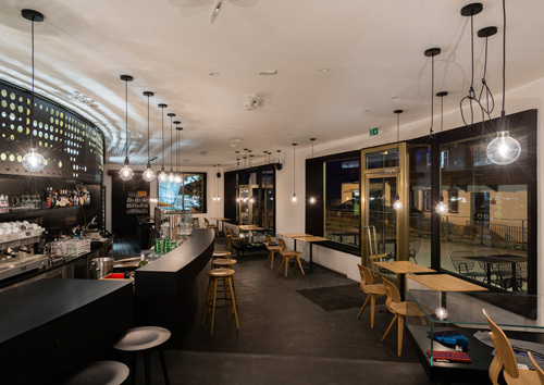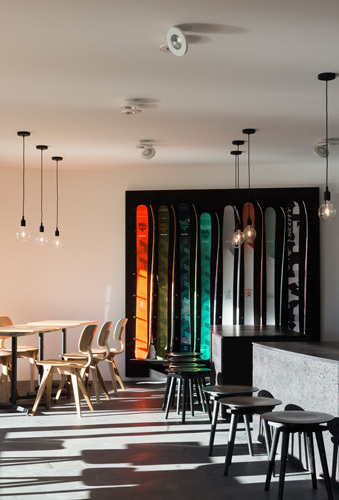 Auf der Hungerburg, oberhalb von Innsbruck, verwirklichten fünf junge Münchner Unternehmer im Kontext zwischen Stadt und Berg etwas vollkommen Neues. Im Format eines Concept Stores verbinden sie eine Café-Bar mit einem Shop, in dem gezielt ausgewählte und unkonventionelle Sport- und Lifestyleprodukte angeboten werden.Für dieses innovative Konzept wurde ein aus den 1960er Jahren stammendes, zwischen der Bergstation der Hungerburgbahn (Architektur: Zaha Hadid) und der Talstation der Nordkettenbahn (Architektur: Franz Baumann) – und damit auch im Spannungsfeld zwischen Avantgarde und Tiroler Moderne – liegendes Gebäude adaptiert. Das Bestandsgebäude für den neuen Zweck umzubauen, war für die Architekt:innen eine interessante und anspruchsvolle Herausforderung, zumal es die Grenzen zwischen Lokal und Shop zu überwinden galt. Grundlegend für das Gestaltungskonzept war es, unter Bezugnahme auf die Material- und Gestaltungsästhetik der 1960er Jahre, die Essenz des ursprünglichen Gebäudeentwurfes wieder herzustellen und im Innenraum erlebbar zu machen. (Text: Architekten, red. bearbeitet)