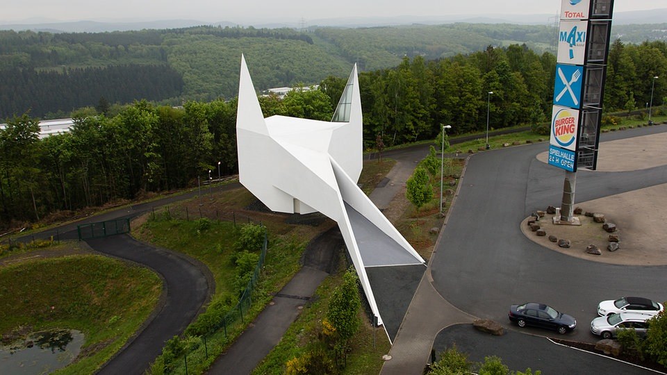 Die filigrane Holzrippenstruktur der Innenkuppel entstand durch ein parametrisches Entwurfsverfahren der schneider+schumacher Parametrik GbR. Durch die Parametrisierung war es möglich, im virtuellen Raum unterschiedliche Variationen zu prüfen und Material und Konstruktion bis ins Detail zu optimieren. (Text: Architekten)