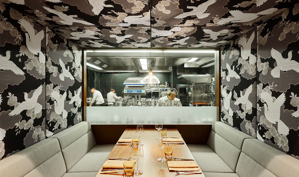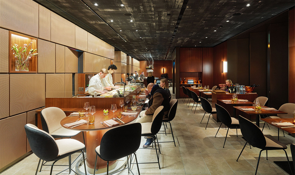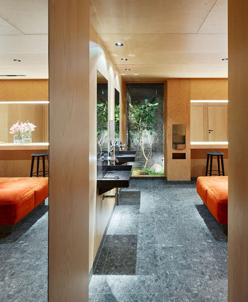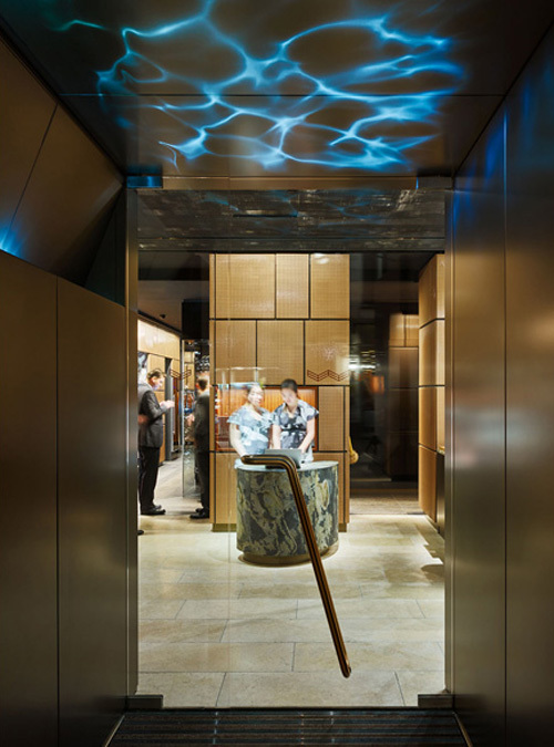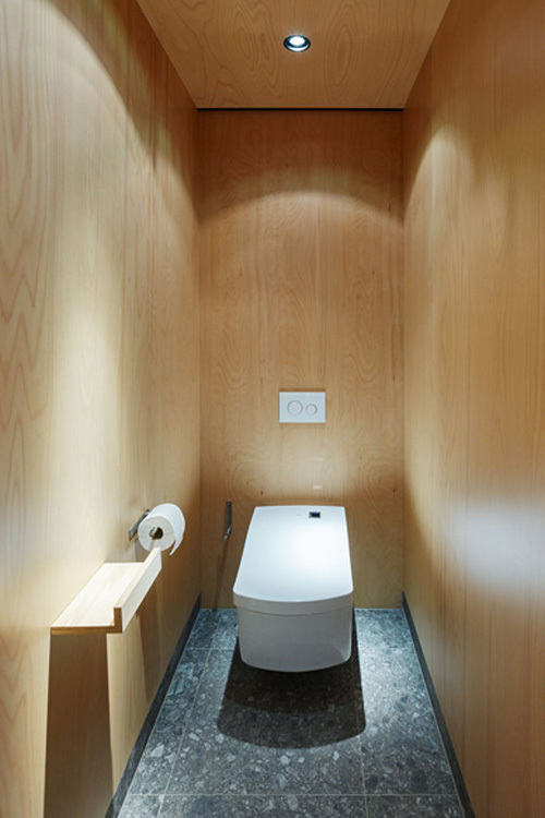 Ein unaufdringliches Beleuchtungskonzept sowie die sanften Klänge der Klassikkonzerte, die der als Musiker berühmte Gastronom von Zeit zu Zeit ausschließlich im Fine Dining Bereich gibt, betonen die intime Atmosphäre. Ein großflächig verspiegelter Stiegenabgang führt zu den luxuriösen Sanitärräumen, die – wie könnte es anders sein – nach japanischem Vorbild eingerichtet sind, inklusive original japanischer Toiletten. Die WCs, mit speziell aus Japan importierten Toiletten, sind vollständig in schlichtem Buchen-Sperrholz ausgeführt.