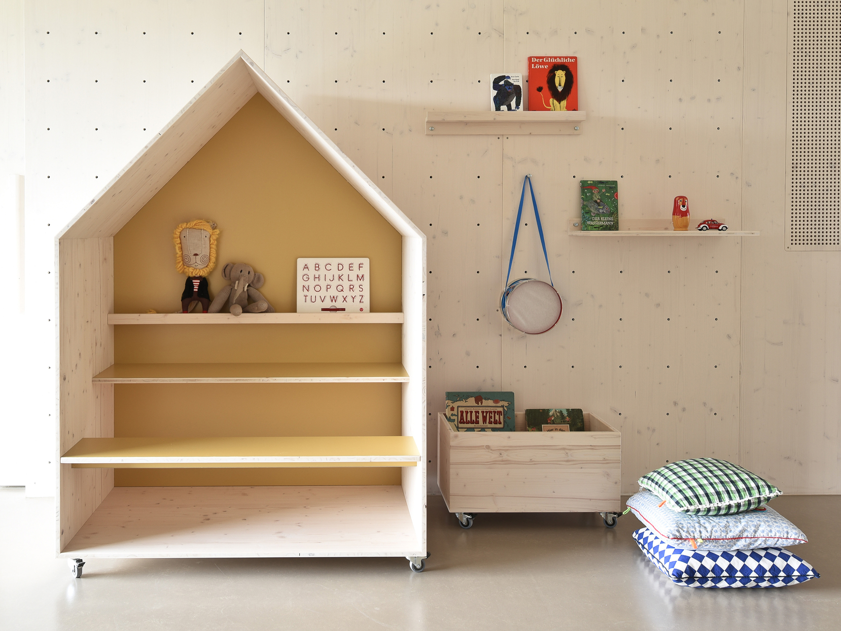 Auf 1425 qm wurden Funktionsräume für Kinder von 0 bis 6 Jahren, Speisesaal und Küche, Verwaltungs- und Nebenräume sowie Räumlichkeiten für die Beratung von Eltern und für Veranstaltungen entwickelt.