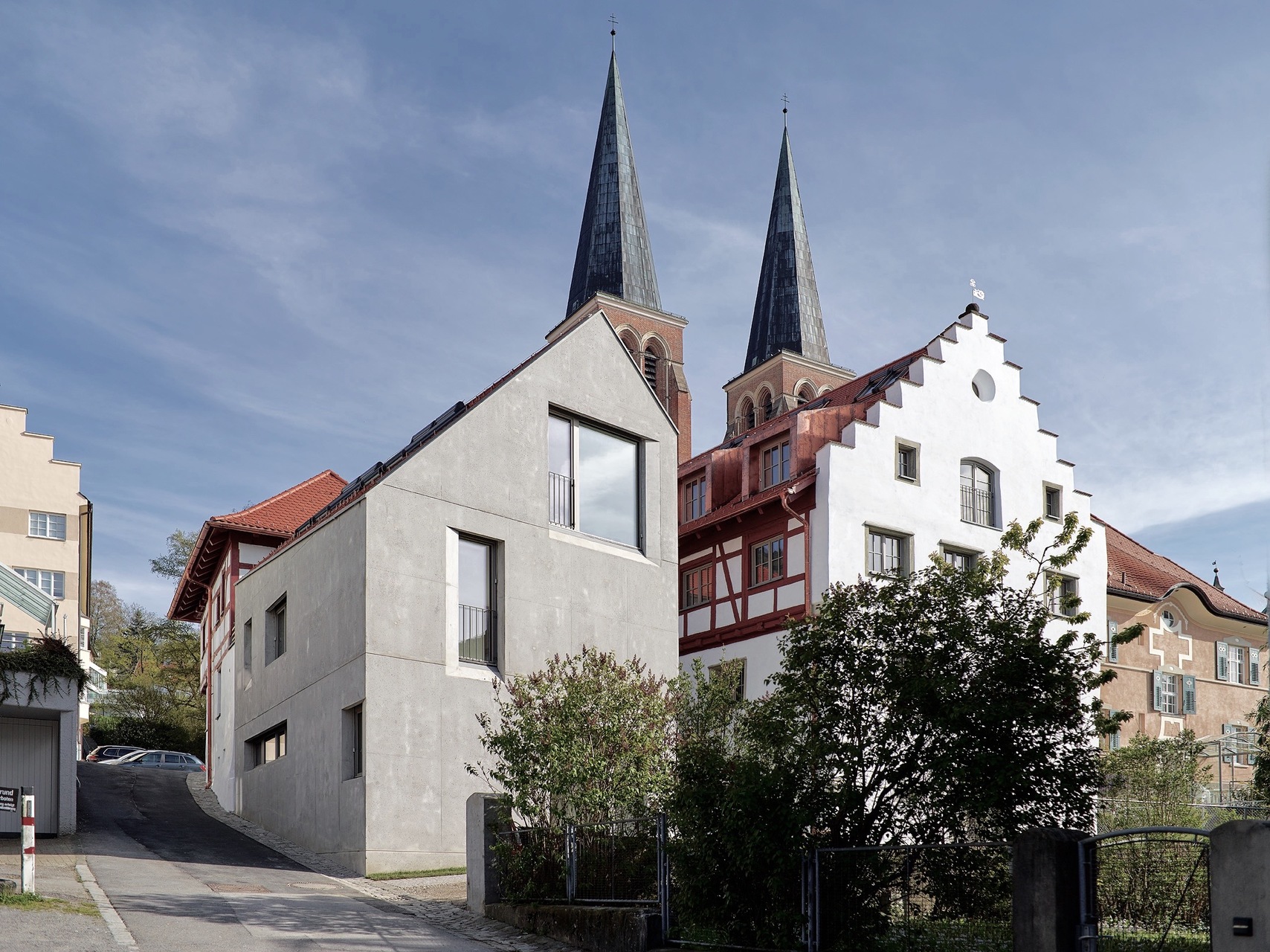 Durch Sanierung, Umbau und Erweiterung um einen Neubau aus Sichtbeton wurde das Ensemble am Kolpingplatz zu einem modernen Haus für „Gemeinsames Wohnen“. Das innovative Konzept besteht aus 11 Kleinwohnungen mit etwa 30 bis 50m² Nutzfläche, die um Mehrzweckraum und Gästezimmer angeordnet sind. Die unmittelbare Nachbarschaft zum Bregenzer Kolping-Haupthaus bietet für die teilweise betreuten Wohneinheiten die nötigen Synergieeffekte: Das Essensangebot der Küche, Pflege und diverse Dienstleistungen, Therapie- und Veranstaltungsräume stehen der Bewohnerschaft zur Verfügung.