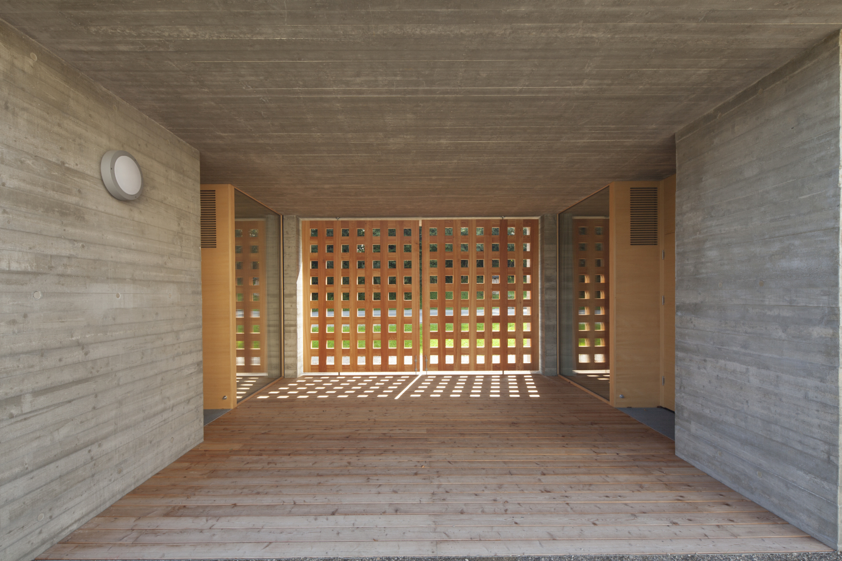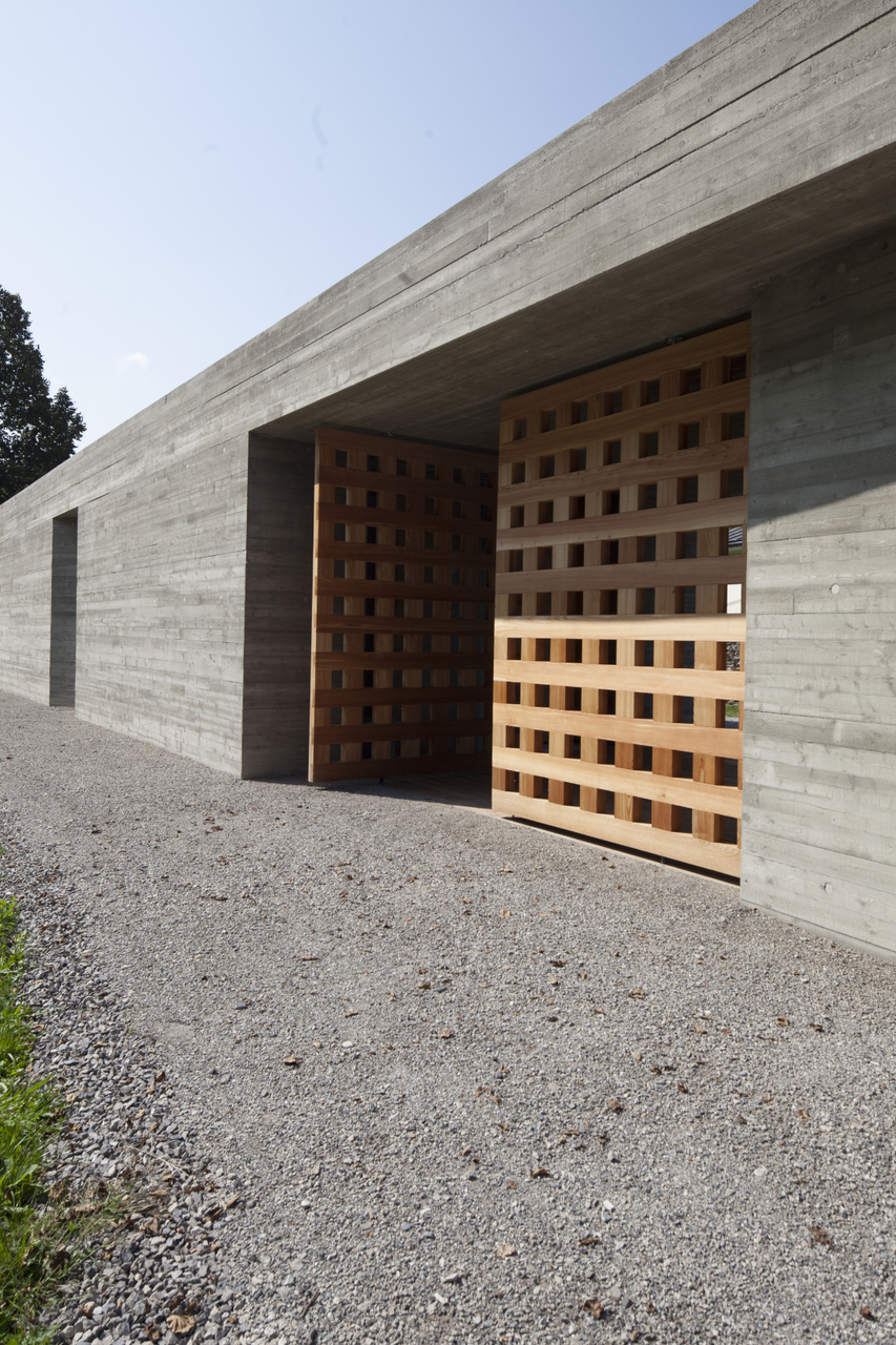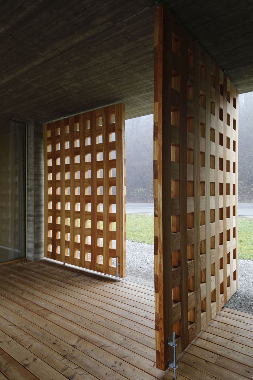 Kein gewöhnliches Haus, sondern eines mit Unterscheidungsmerkmalen, die Diskussionspotential beinhalten und die Auseinandersetzung mit der Architektur evozieren werden. Ein einfaches Haus, das schützen und bergen will, sich gegen die Straße abschirmt und dann wieder großzügig öffnet um der Anforderung Einladung und Angebot für die Menschen am Ort zu sein, gerecht zu werden. (Text: Fritz Breitfuss)